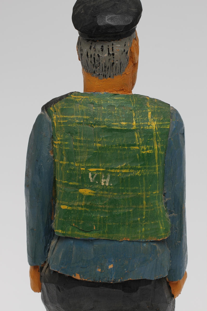 OKÄND KONSTNÄR. Snidad träfigur, monogramsignerad V.H.