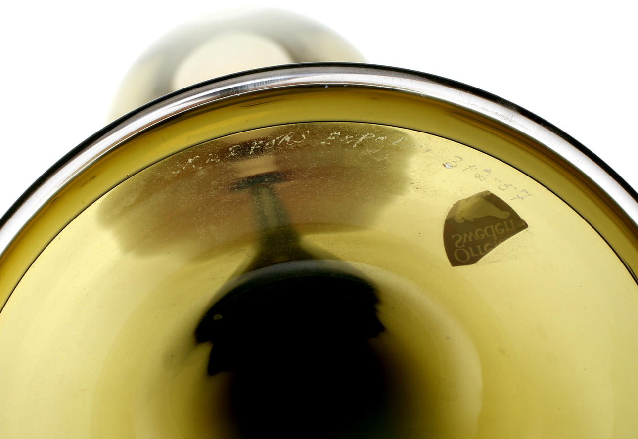 Underfång i grönt. Sign. Orrefors Expo N 312-57.