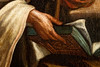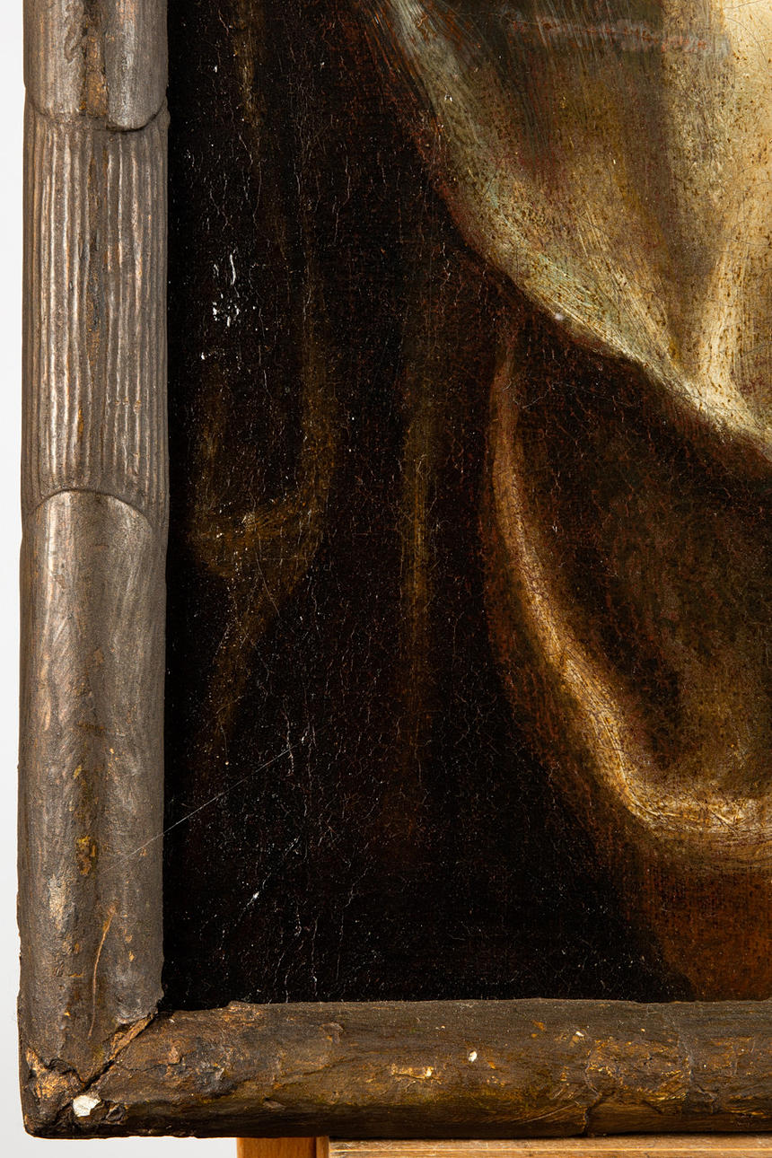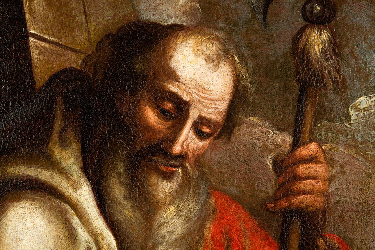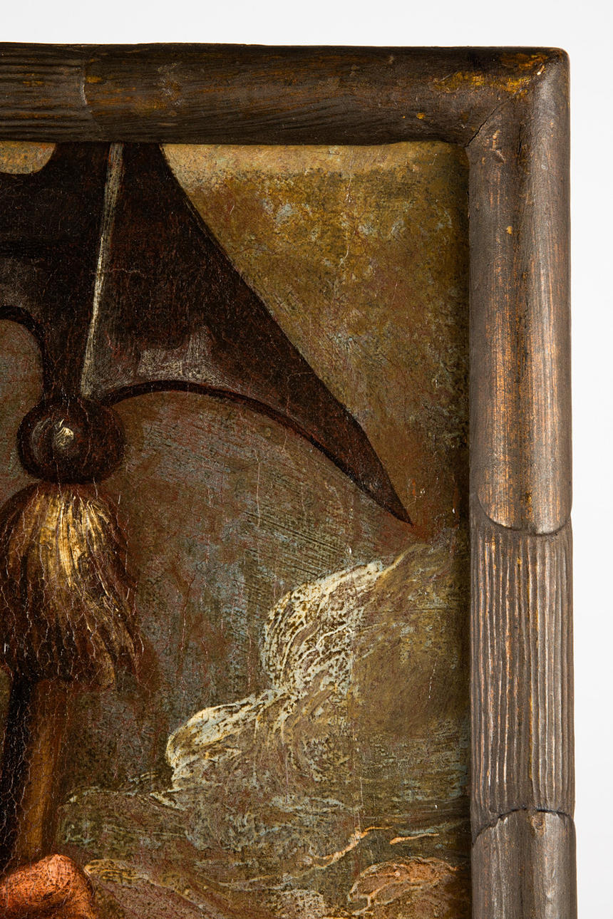 Okänd konstnär, måleri, Apostel Matthias, olja på duk. Skildring av aposteln Matthias med en halberd till vänster som ett tecken på hans martyrskap och en bok till höger, 81x57cm (87x64cm).