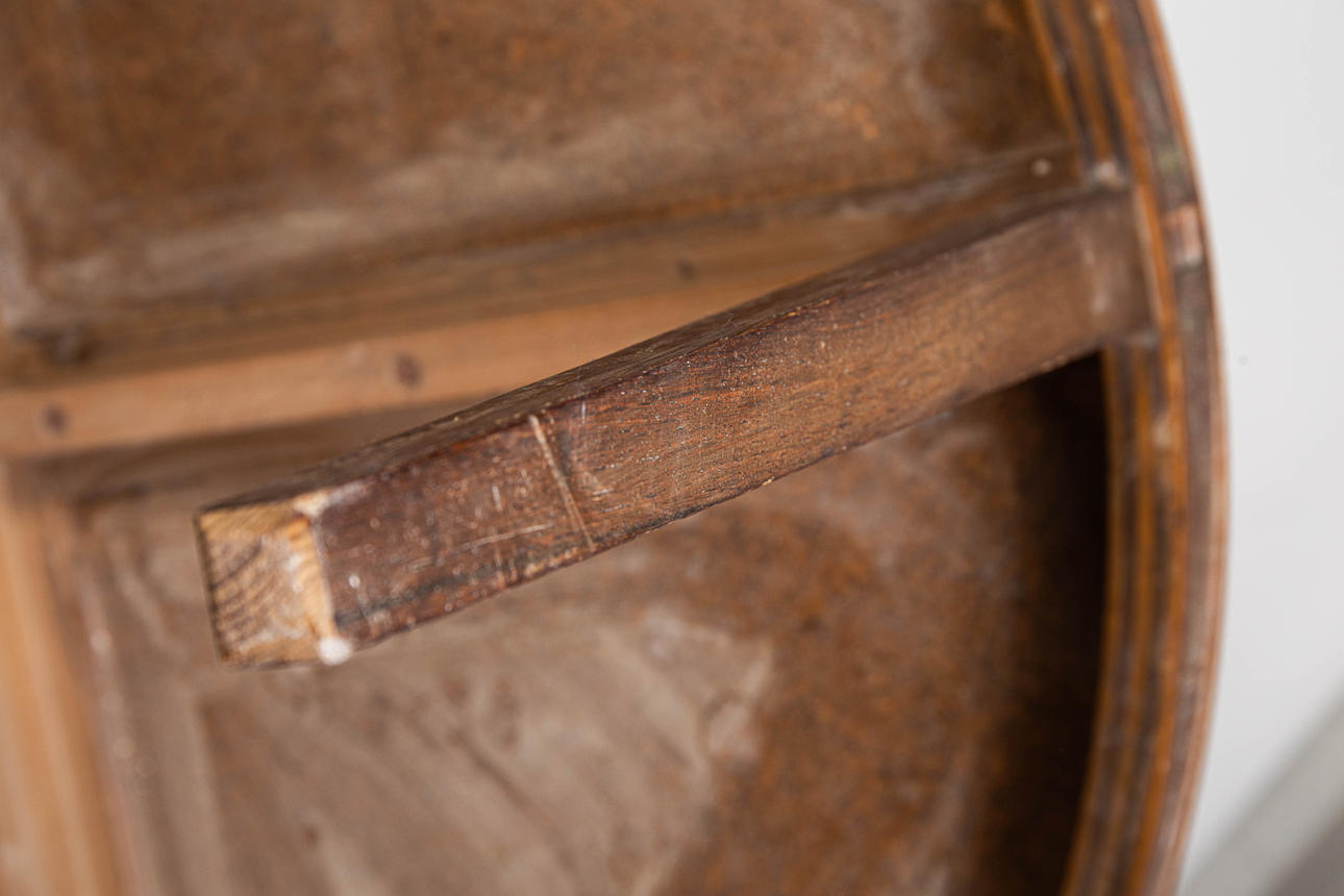 Åldersanpassade tecken på användning och gnidning, partiella scuffs och repor i träet.