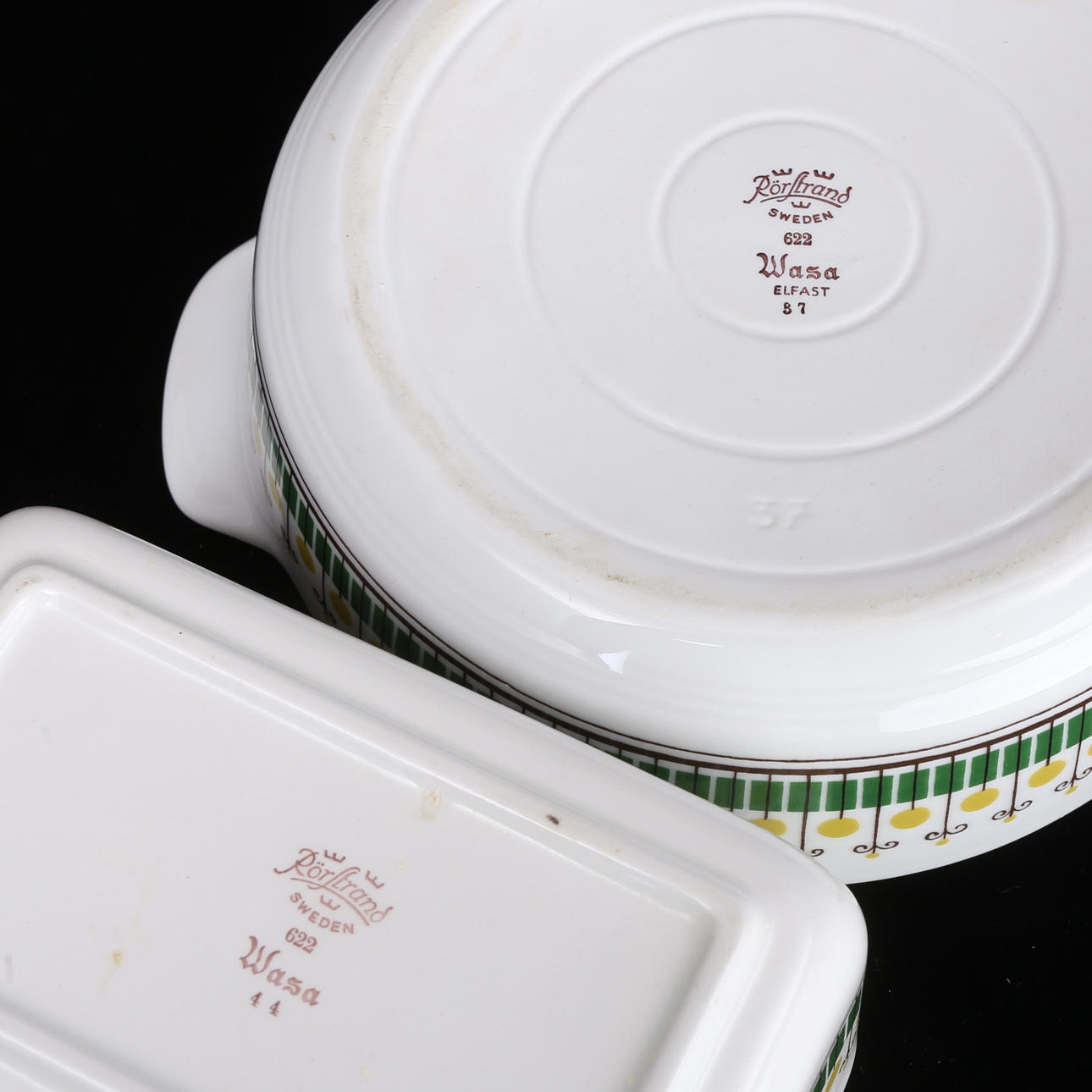 1708856. SMÖRBURK, SKÅL, 2 delar porslin, "Wasa", Rörstrand.