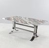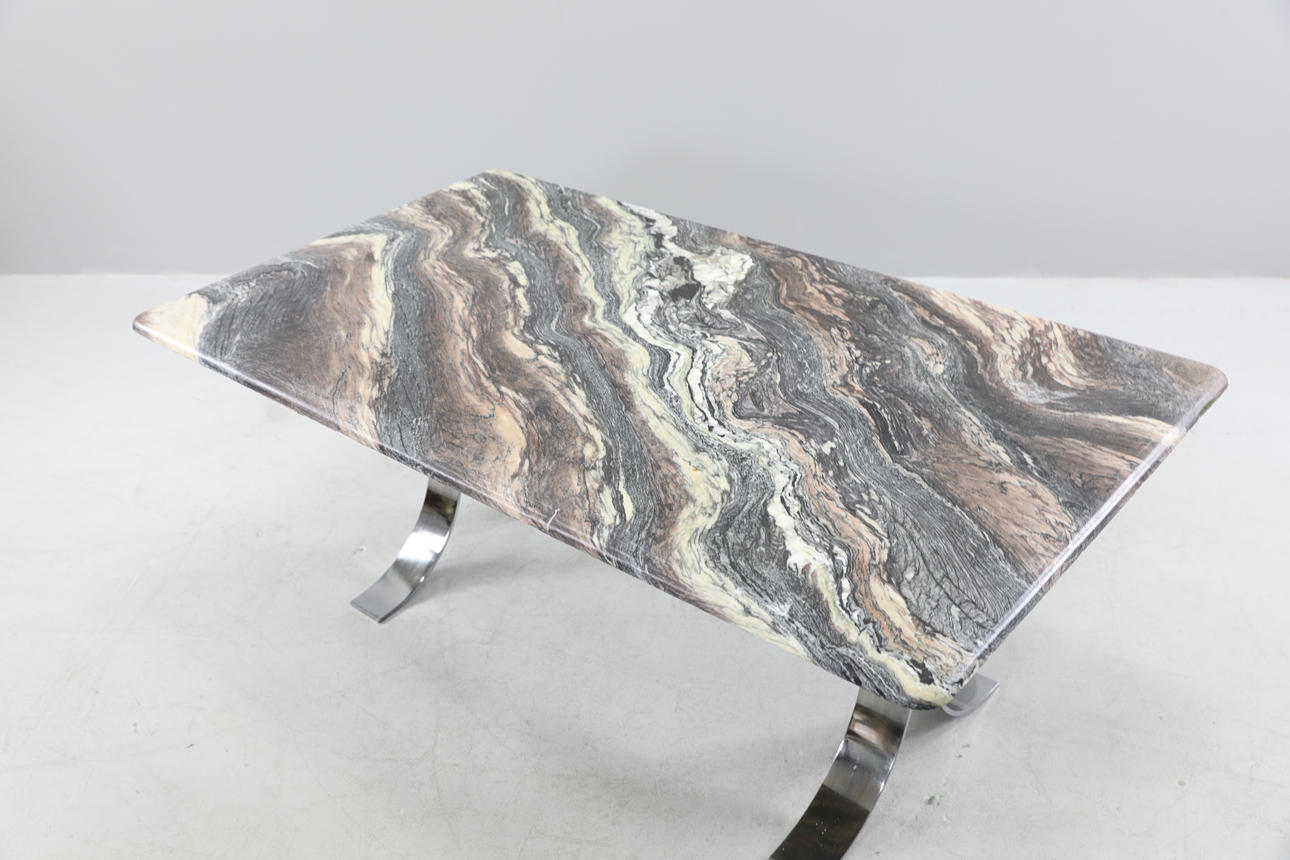Kromfärgat underrede, skiva av marmor. Höjd 52 cm Längd 140 cm Bredd 80 cm.