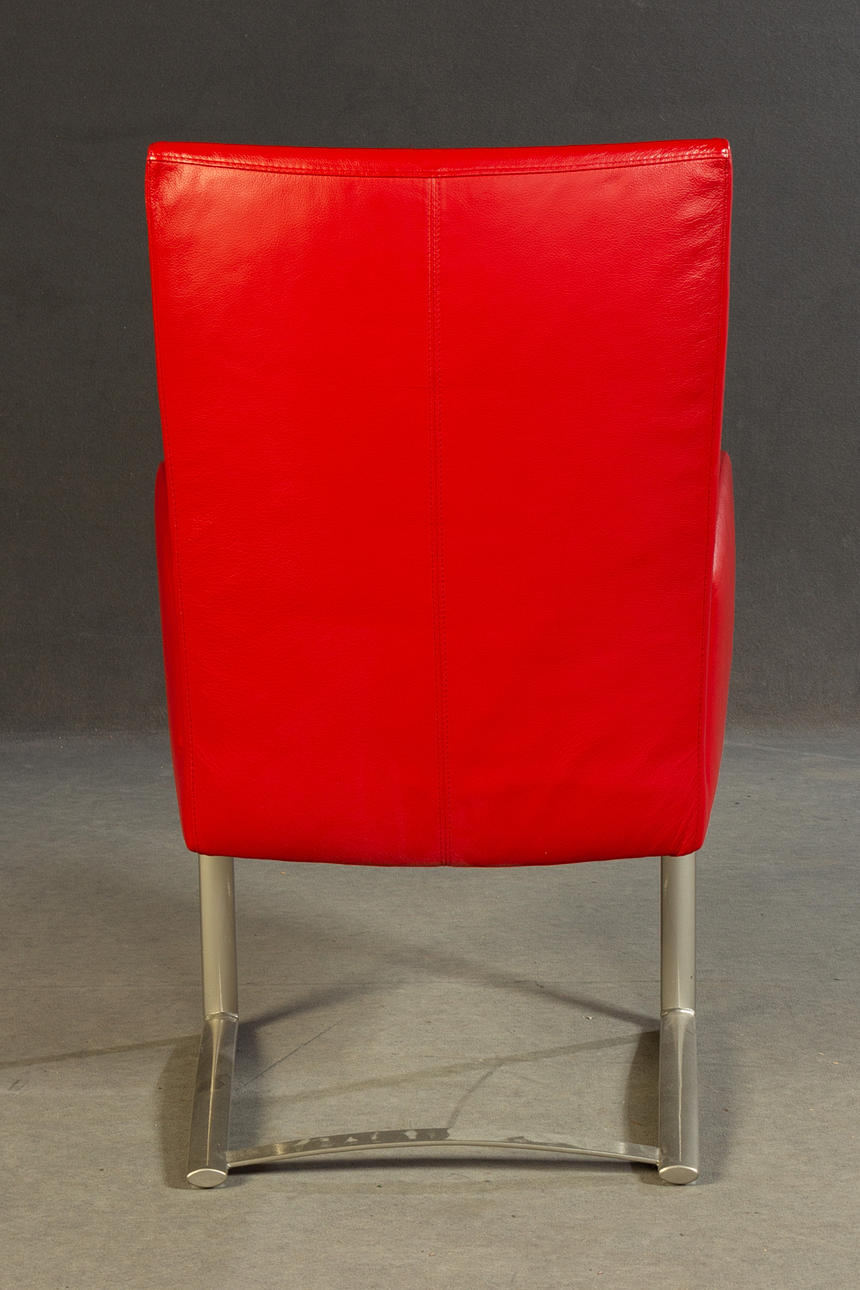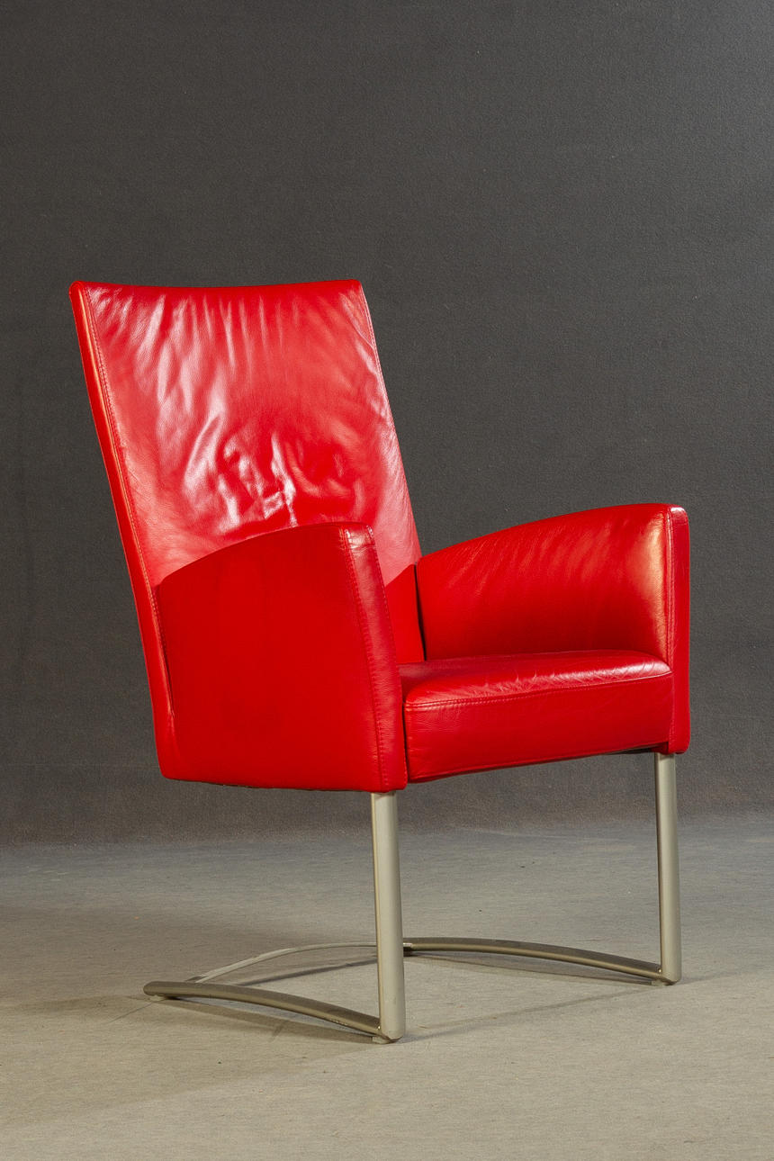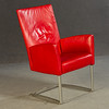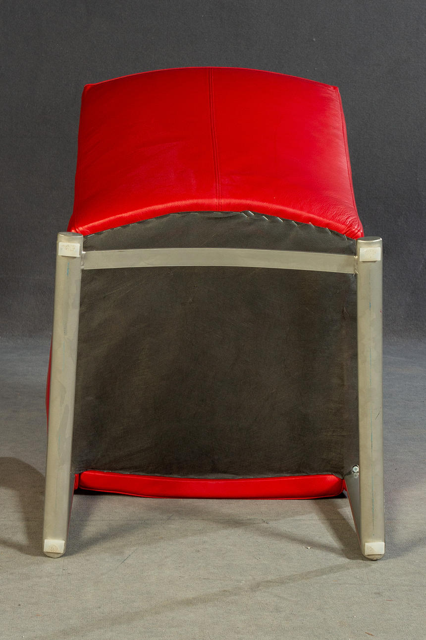 fribärande stol. Silvergrå lackerad metallram. Rött läderfodral HxBxHxD: 101 x 62 x 45 x 52 cm.