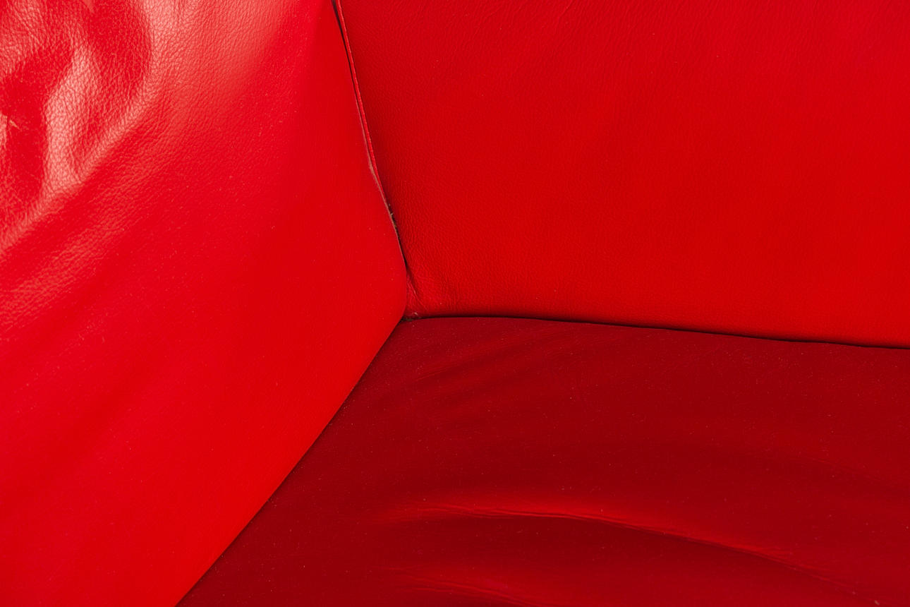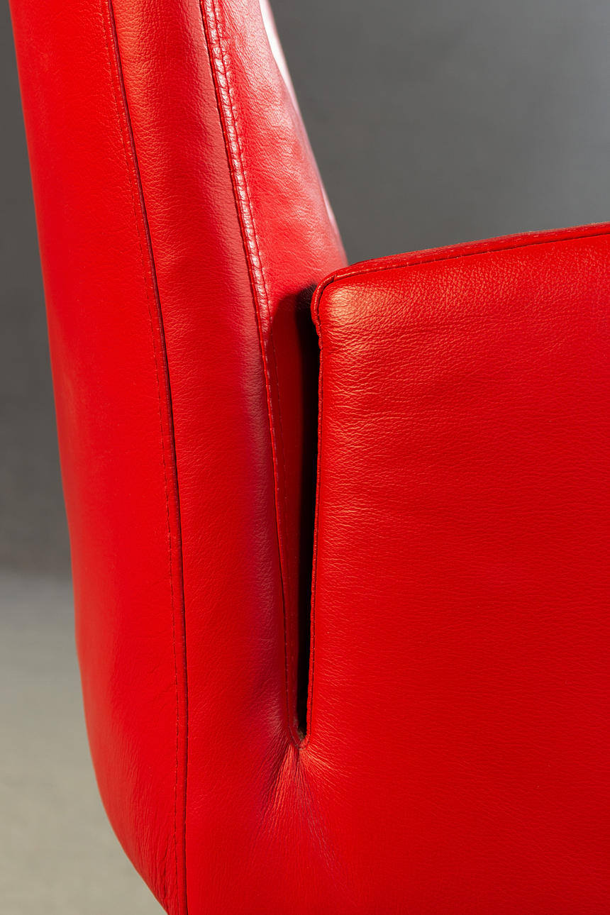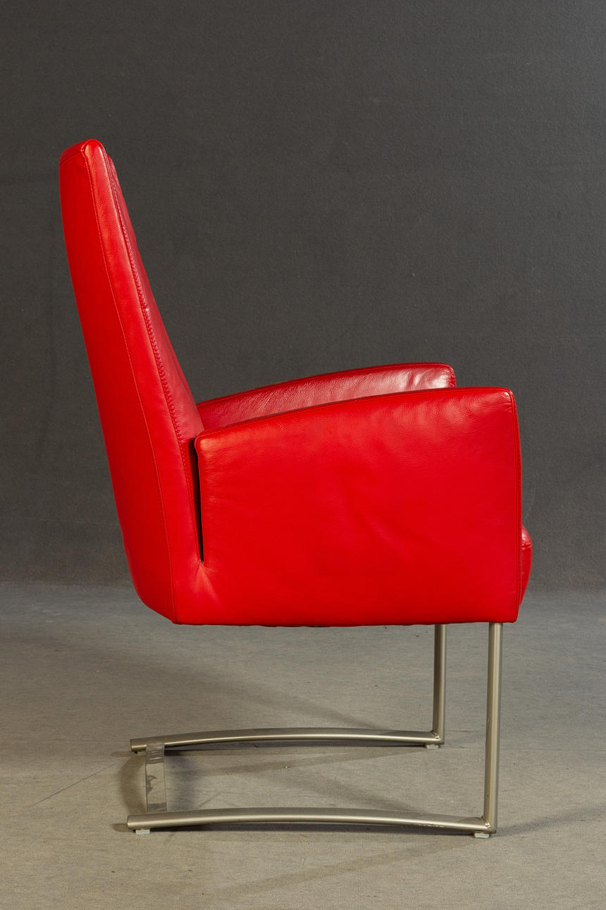 fribärande stol. Silvergrå lackerad metallram. Rött läderfodral HxBxHxD: 101 x 62 x 45 x 52 cm.
