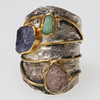 RING, silver med råa ädelstenar, samtida.