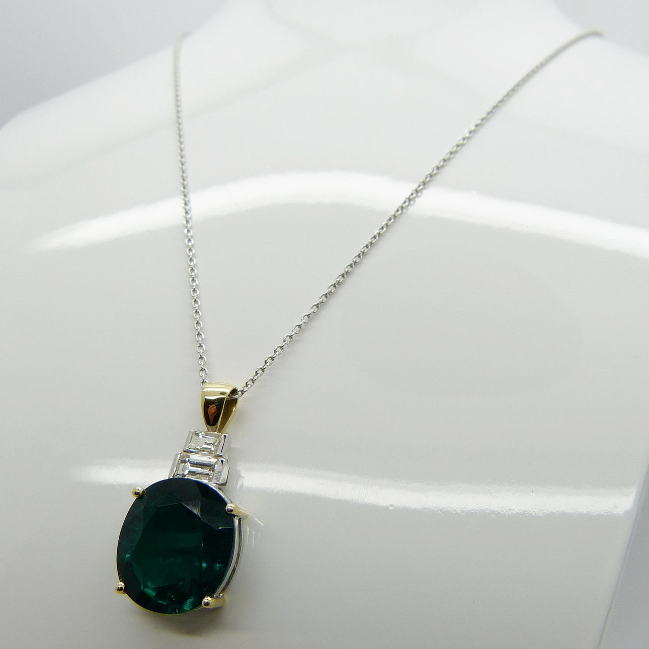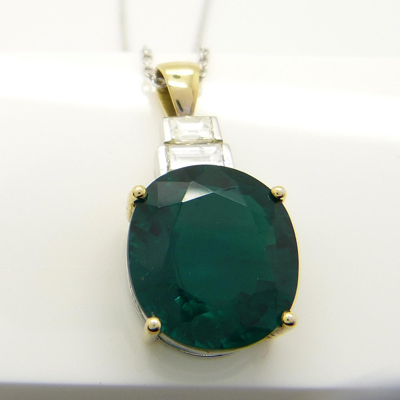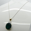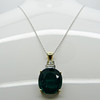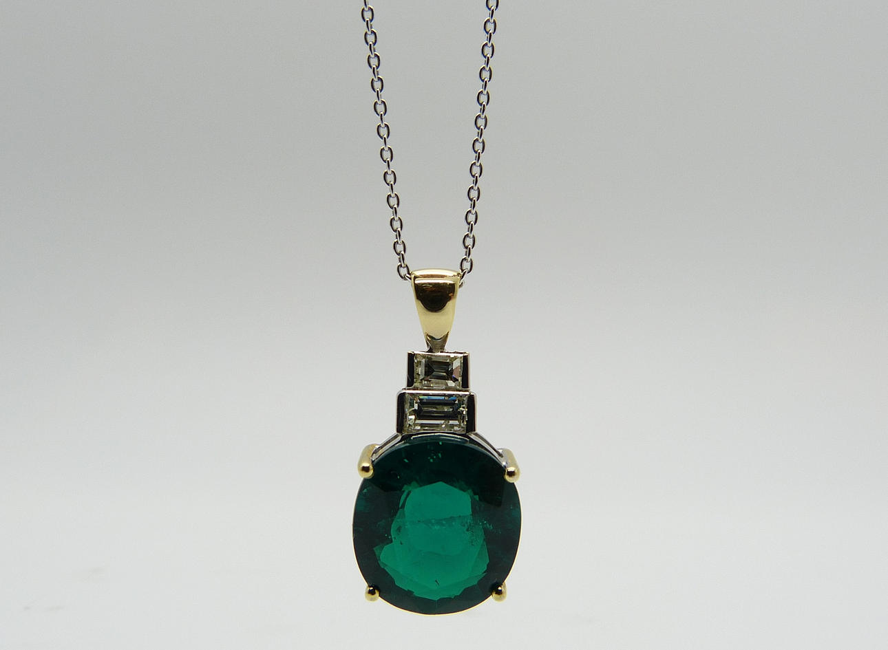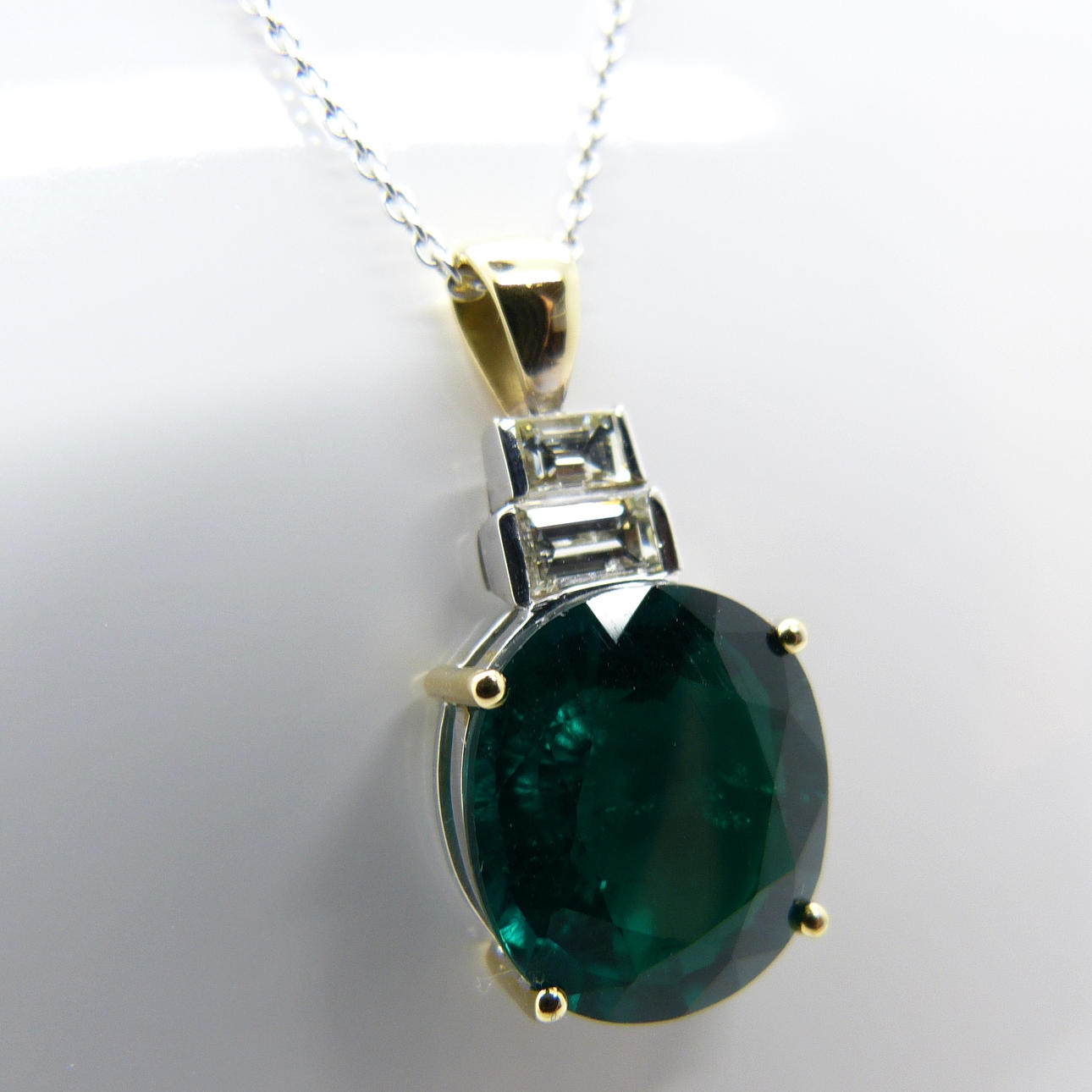 Hänge 18ct gult & vitt guld med en syntetisk grön smaragd och diamanter med en 14k vitguld kedja, certifierade.