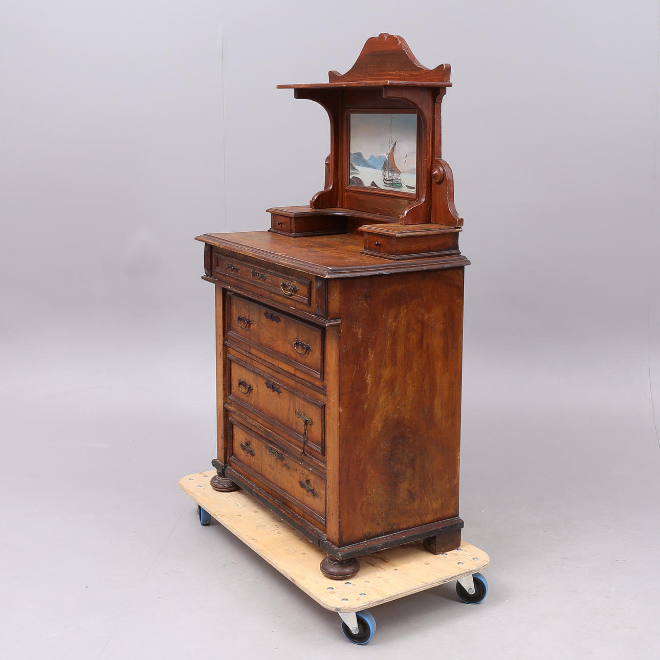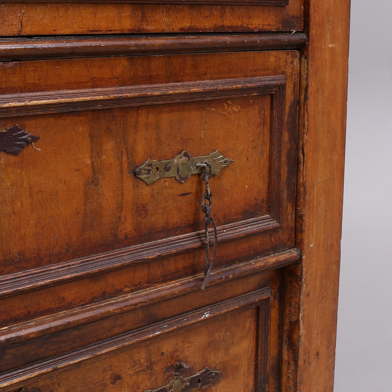 Omfattande slitage, fläckar, repor, skador, omarbetad och kompletterad.