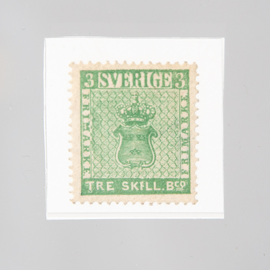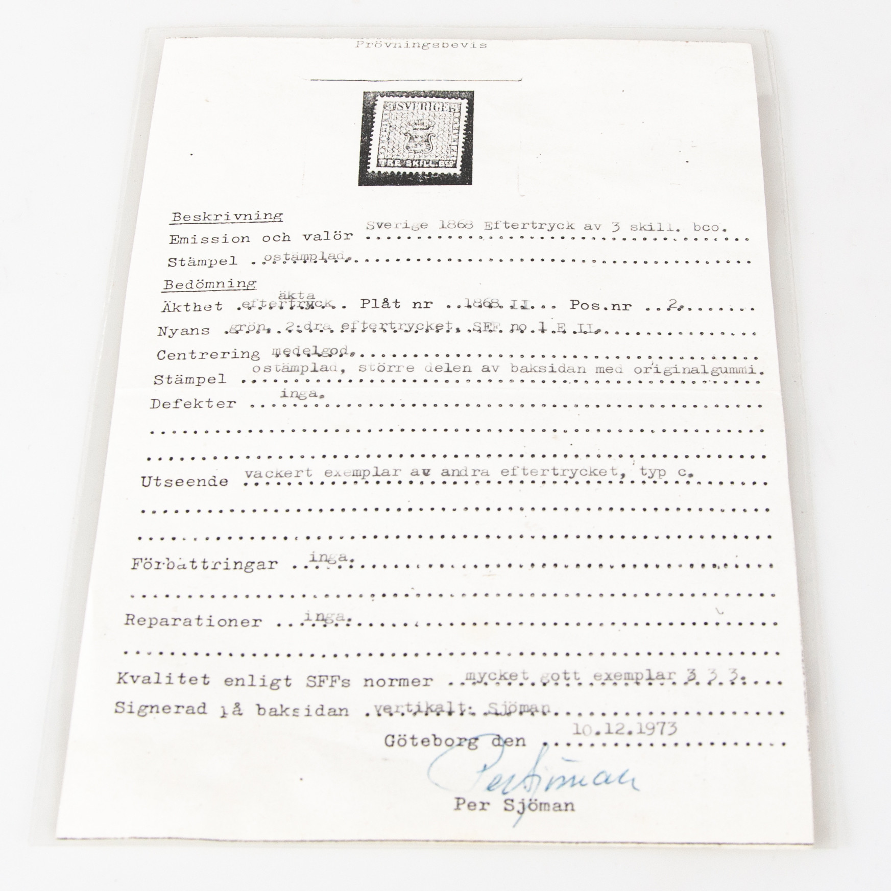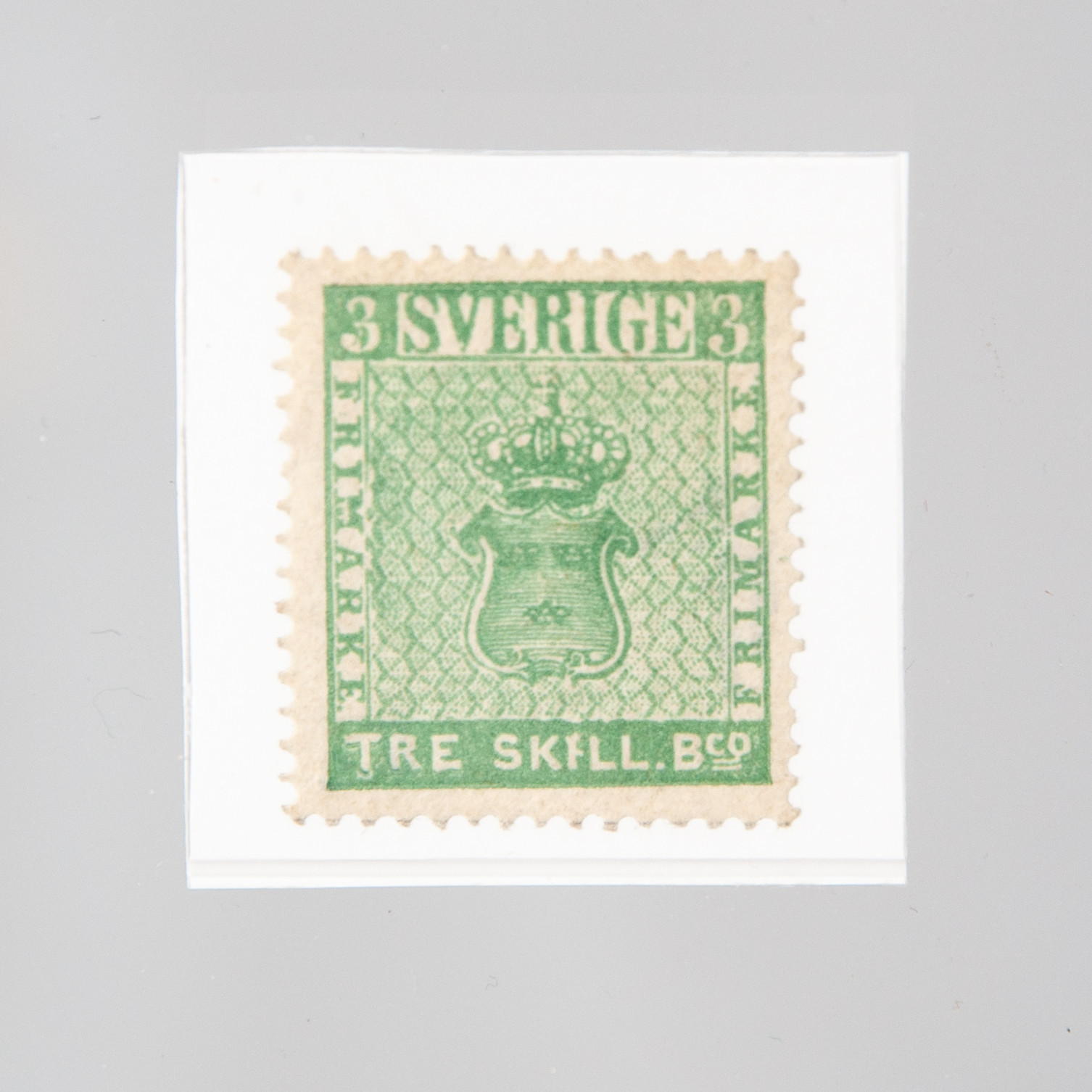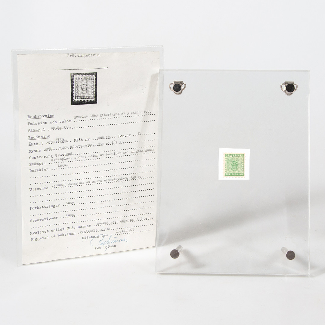 1727281. 3 Skilling banco 1868, eftertryck, grön.