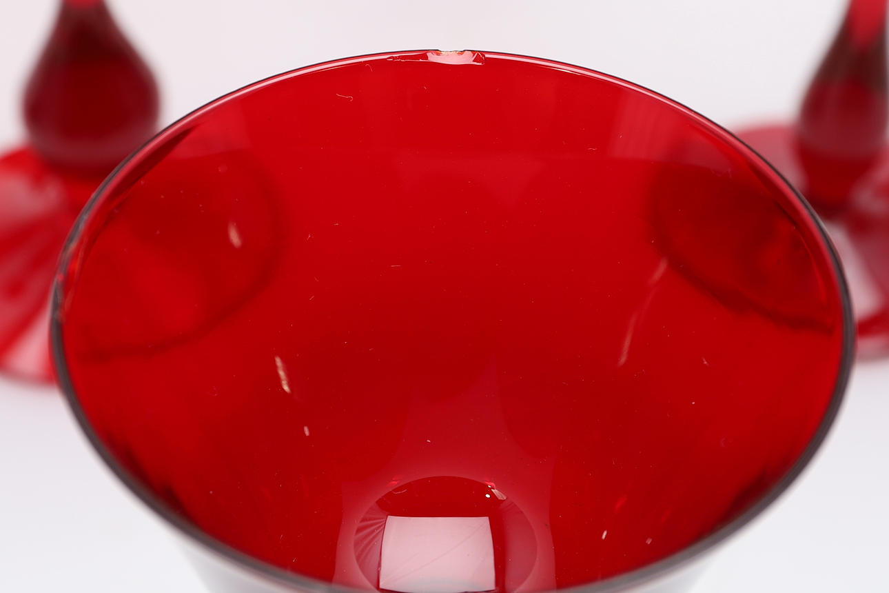 1728738. EN UPPSÄTTNING AV 19 RÖDA VINGLAS.