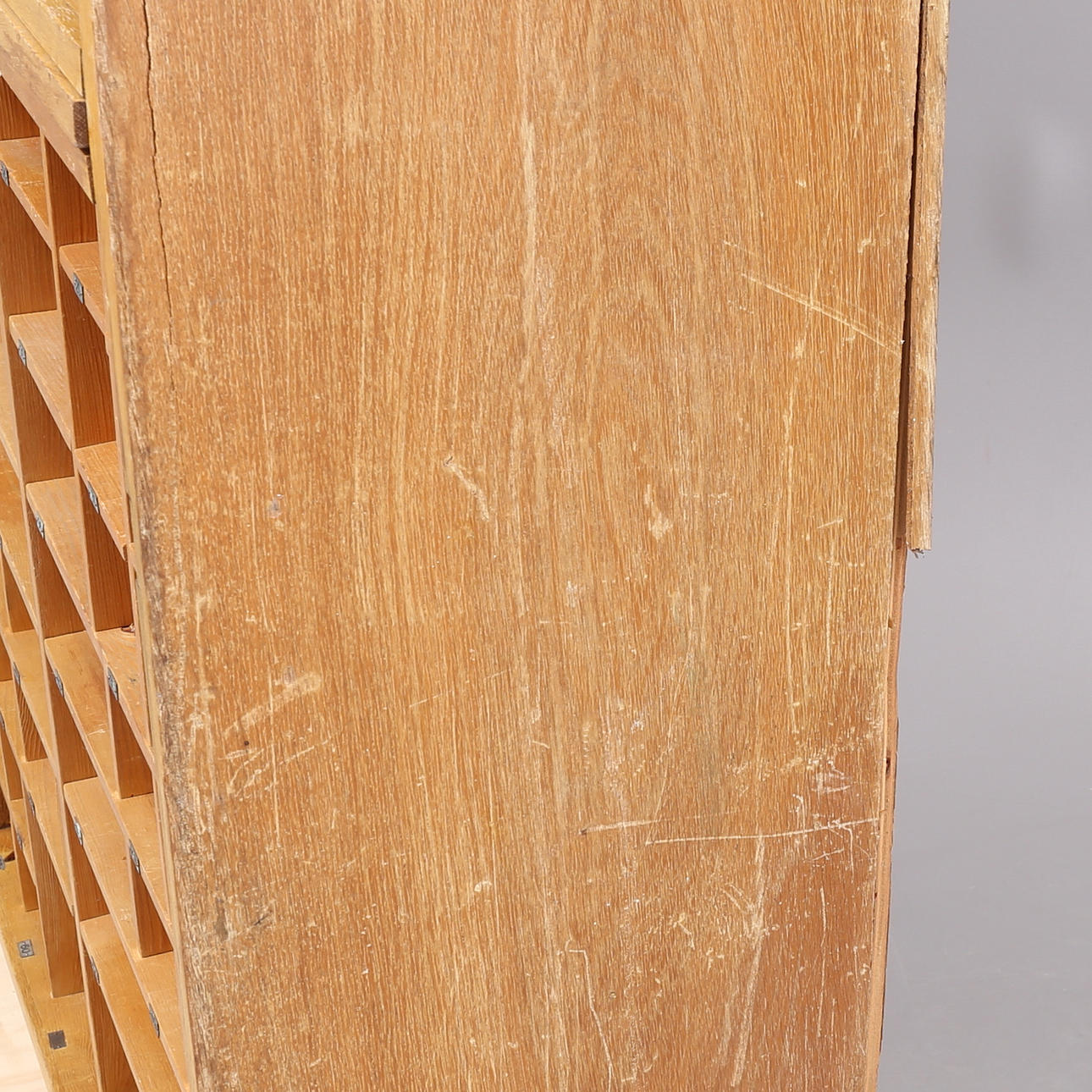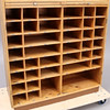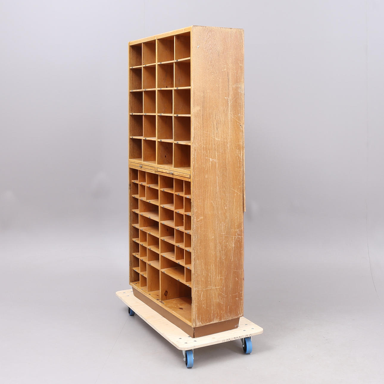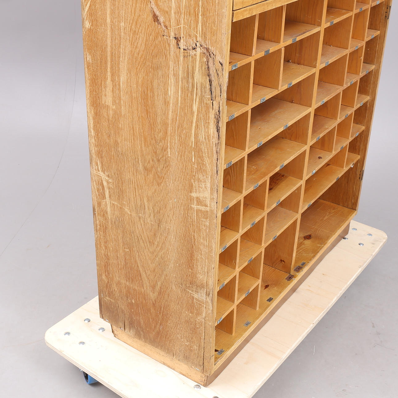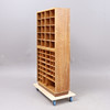 Med bricknumrerade fack nr 1 - 62. Höjd 190, bredd 100, djup 37 cm.