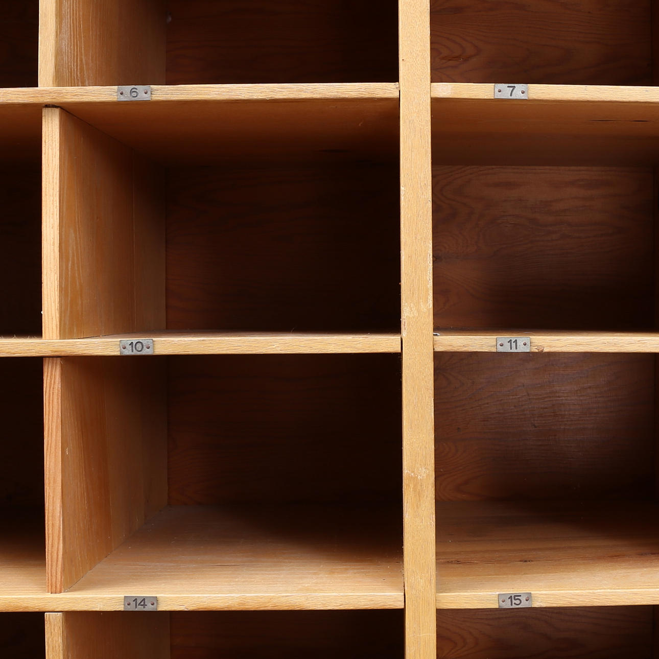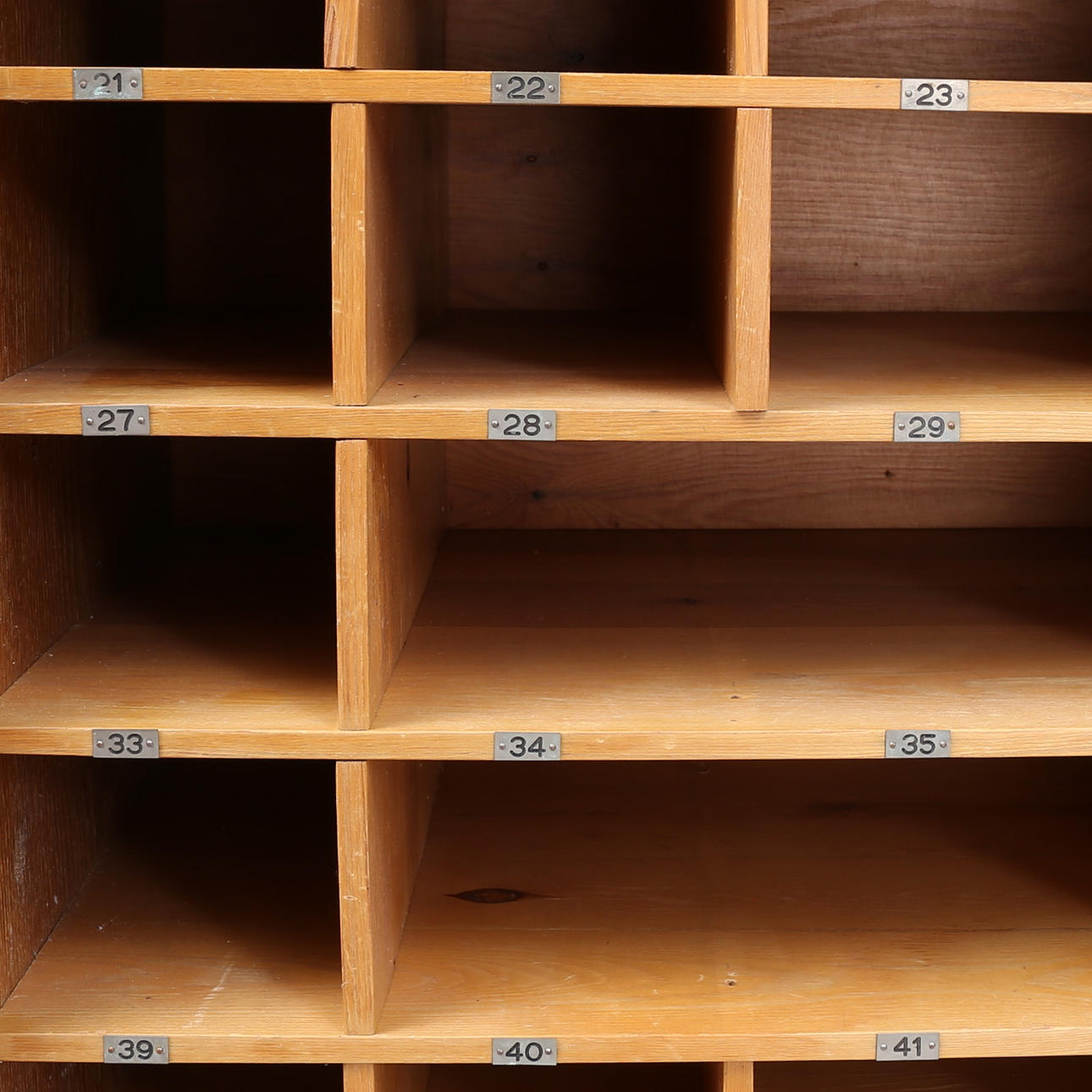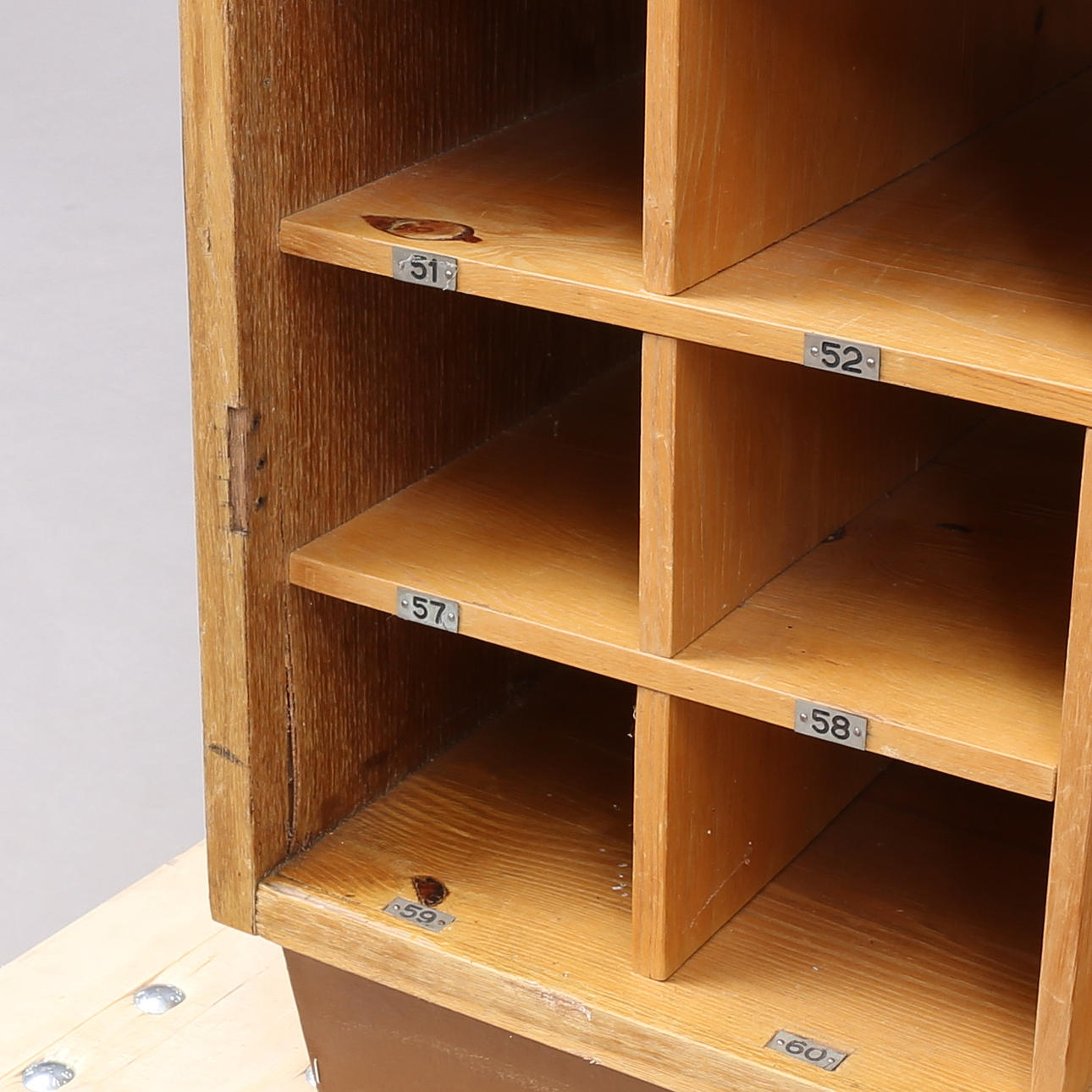 Med bricknumrerade fack nr 1 - 62. Höjd 190, bredd 100, djup 37 cm.