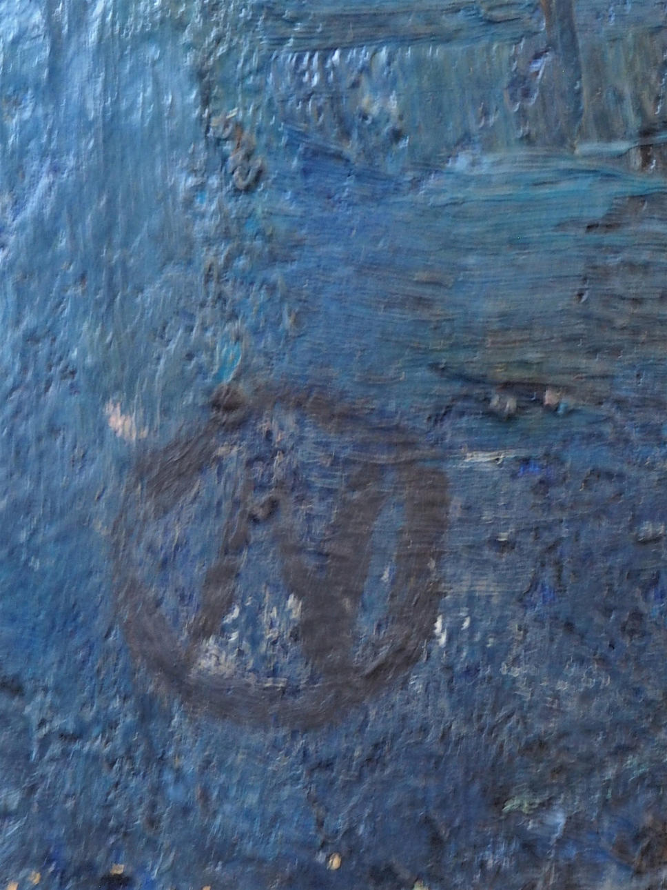 Duk på uppfodrad på pappskiva, utan ram. Mått 90,5 cm x 80 cm.