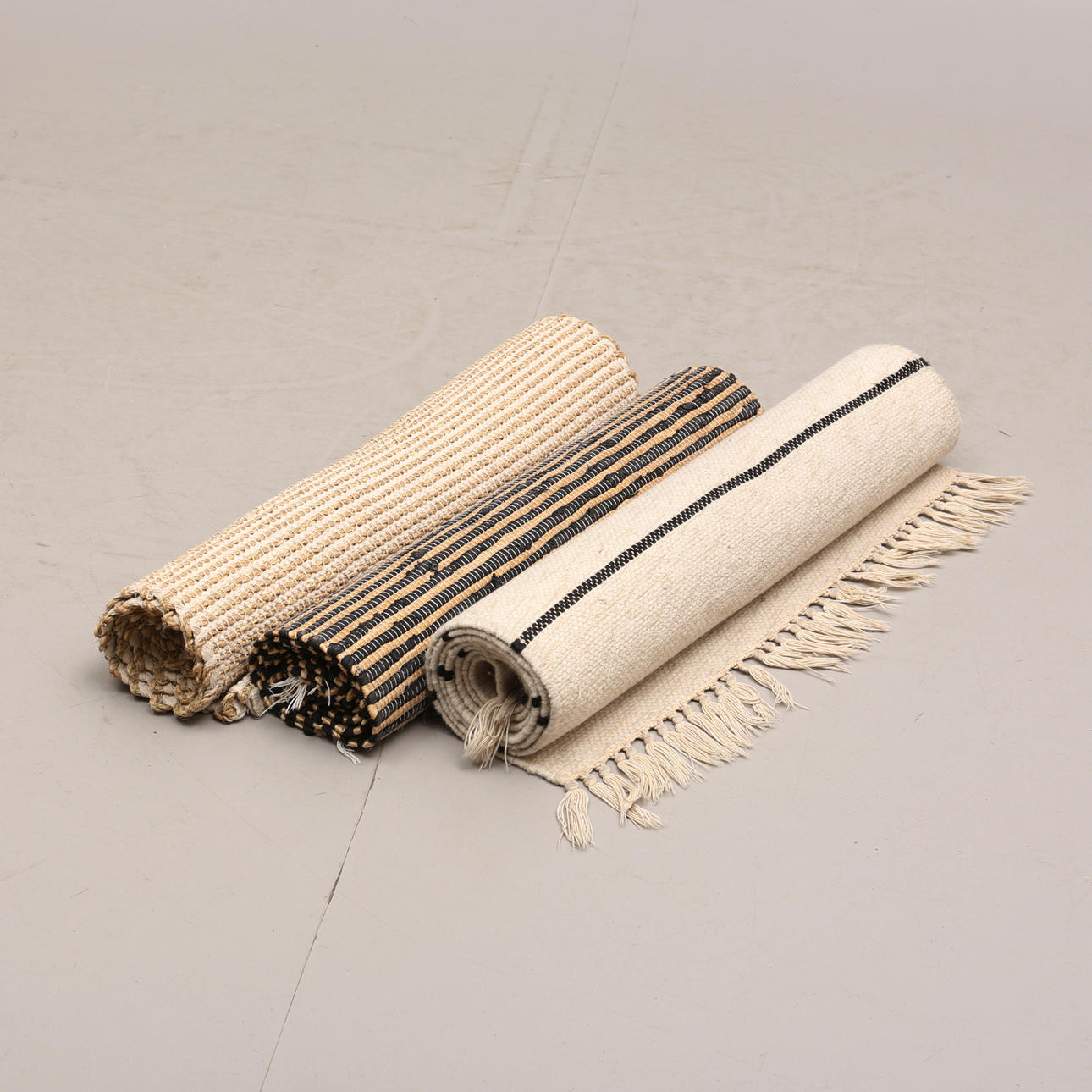 Trasmattor bomull/sjögräs, 71x202 samt 76x205 cm.