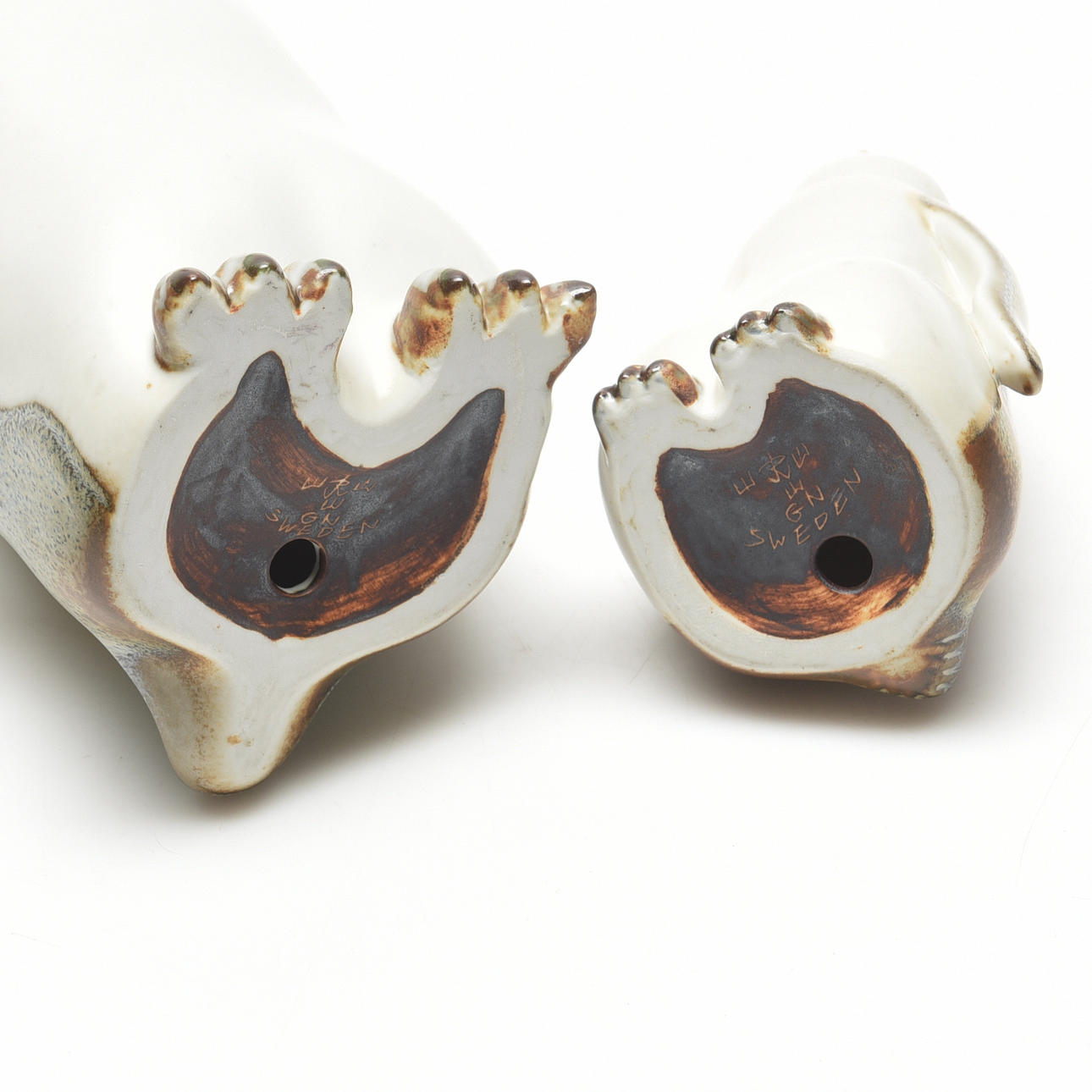 glaserat stengods, signerade, GN Rörstrand, höjd ca 15 resp 27 cm.