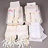 46 lakan, 24 örngott med fransar, 20 handdukar, 10 st bordsdukar.