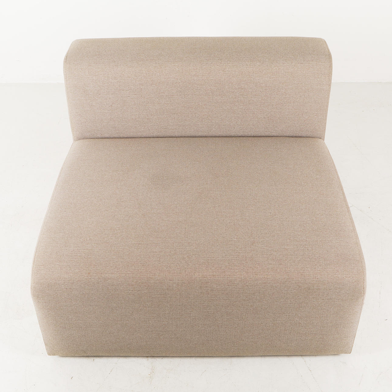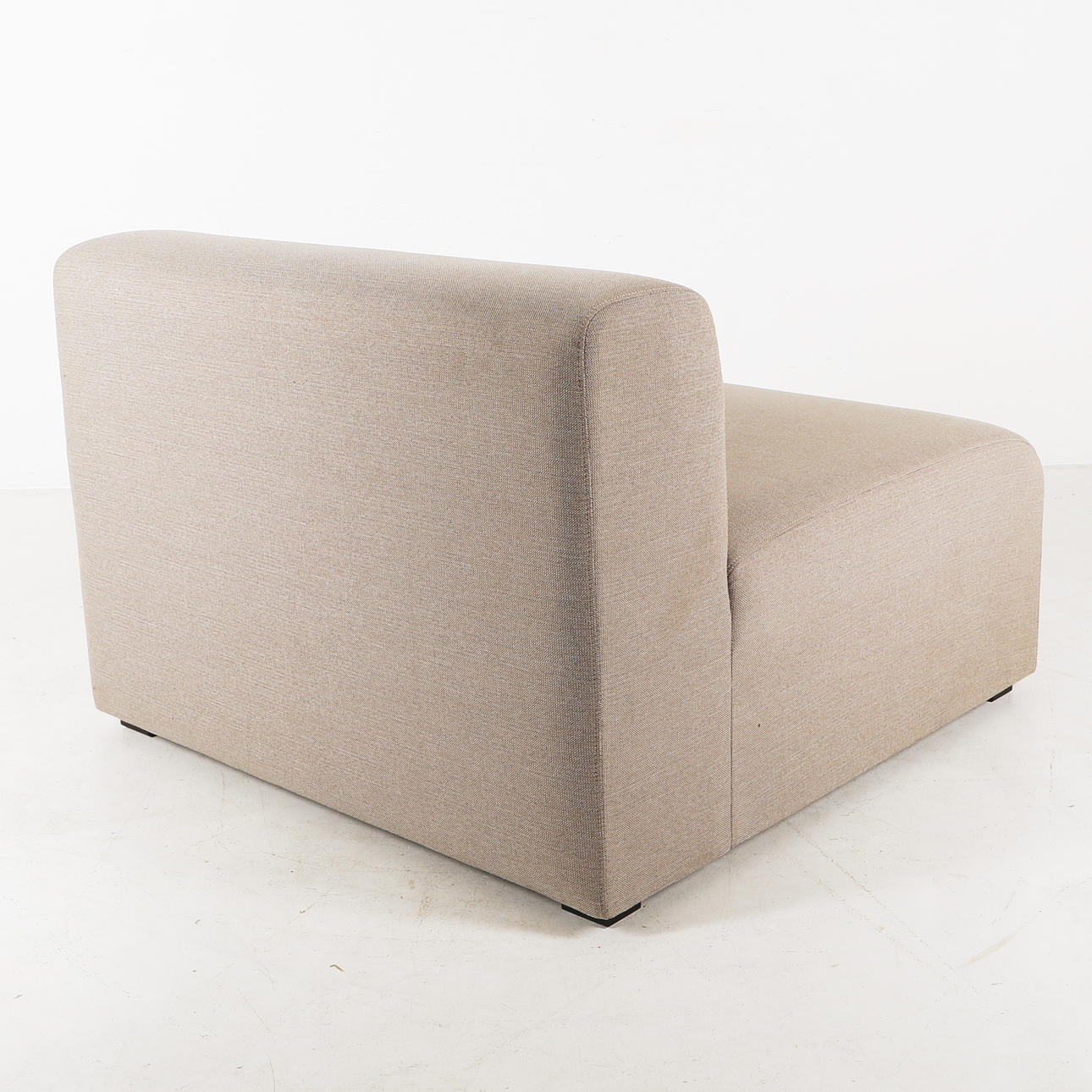 Danmark, stomme i trä, gråbeige tygklädsel, bredd ca 92, djup ca 91 cm.