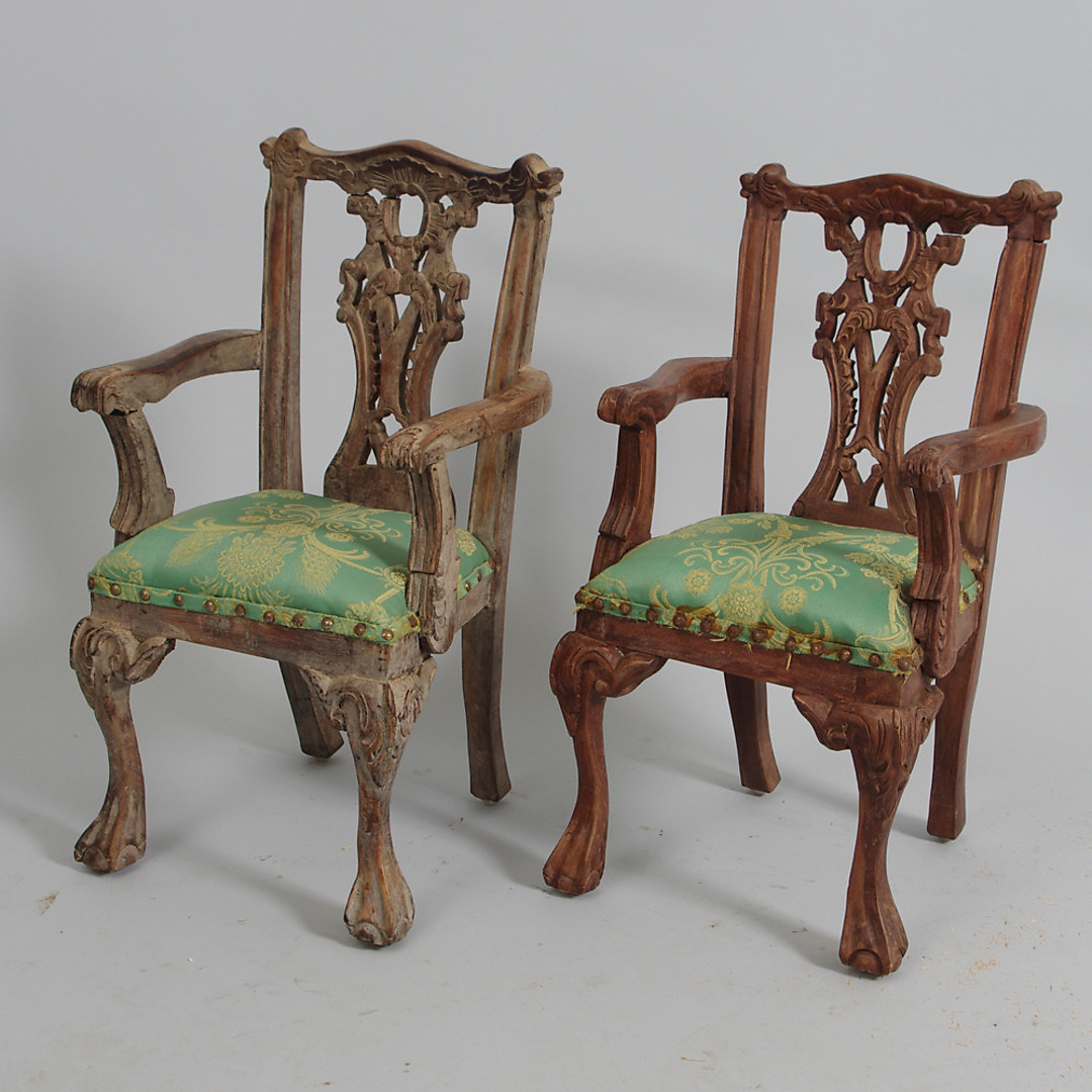 174072. KARMSTOLAR, 1 par, barnmodell, chippendalestil.
