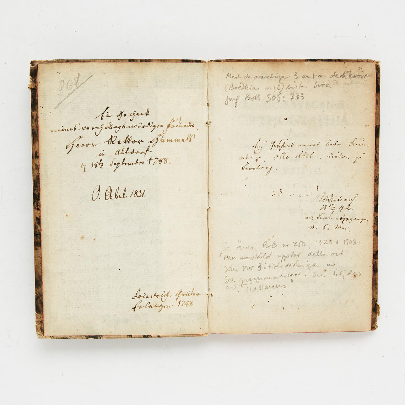 Proveniens: Clas Ifvarsson (1941-2012), koncernchef och VD för Stockholm Stadshus AB. Tidigare VD för ett par bolag inom Stockholms stad och under en period aktiv inom kommunalpolitiken. Hans imponerande boksamling bestod till största delen av svensk vitterhet från 1600-1800-talet, men även av många andra viktiga verk med tonvikt på Sverige. Ifvarsson var mycket kulturhistoriskt intresserad och dessutom en engagerad och kunnig samlare, vilket syntes i hans omfattande bibliotek.