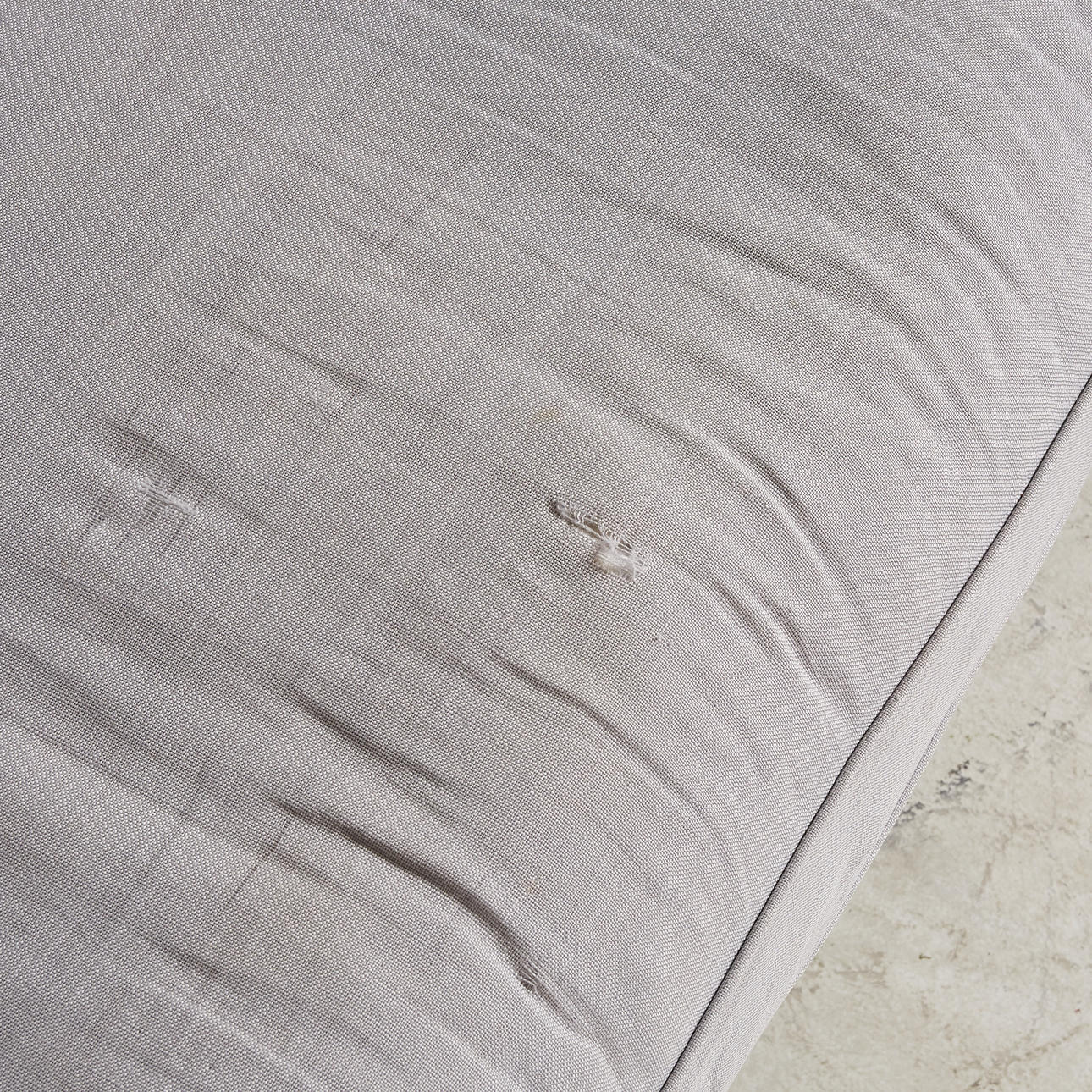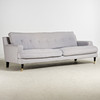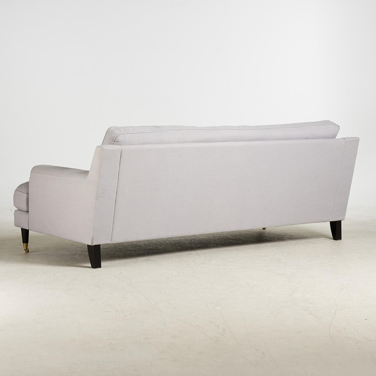 Sammetssoffa, 2000-tal, Sverige, klädsel i grått sammet, lösa plymåer, hjultrissor i mässing, sitthöjd ca 44 cm, bredd ca 100 cm.