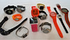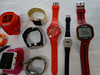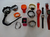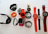 13 sportiga armbandsur, alla fullt fungerande och i gott skick, olika märken och åldrar, diameter ungefär från 3 till 4,6 cm.