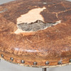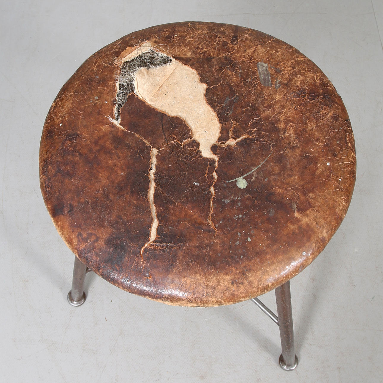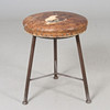 Benställning av lackerad metall. Fast sitts klädd med läder. Diameter ca. 44, höjd 53 cm.