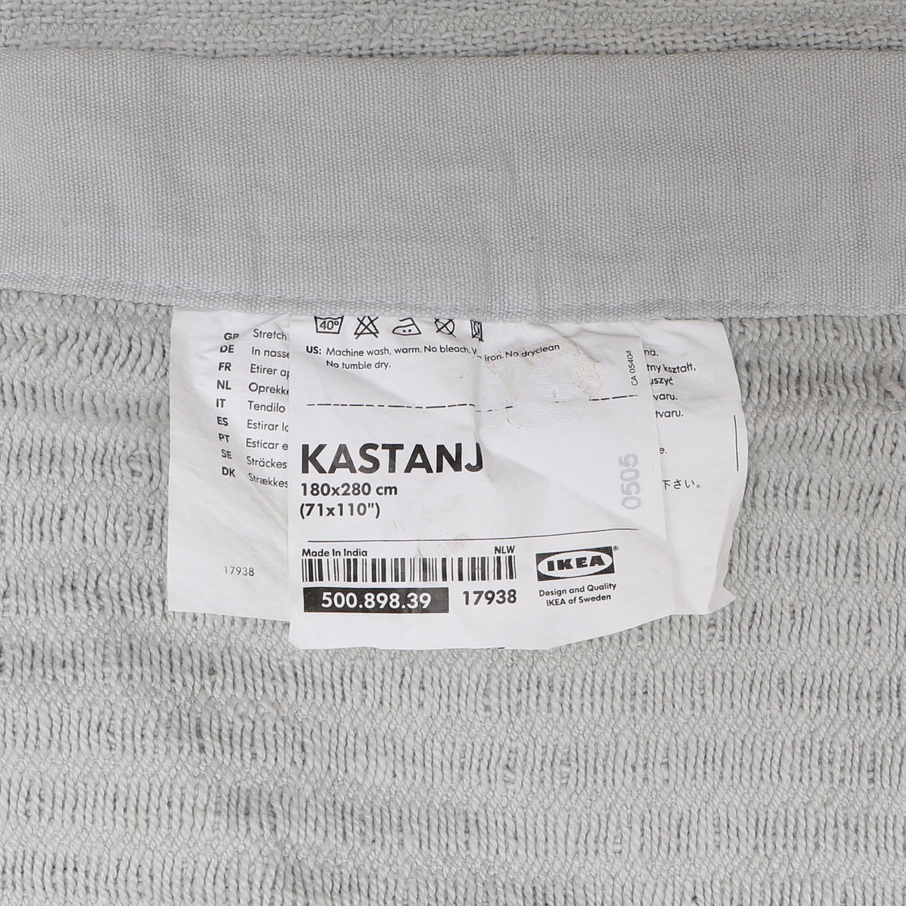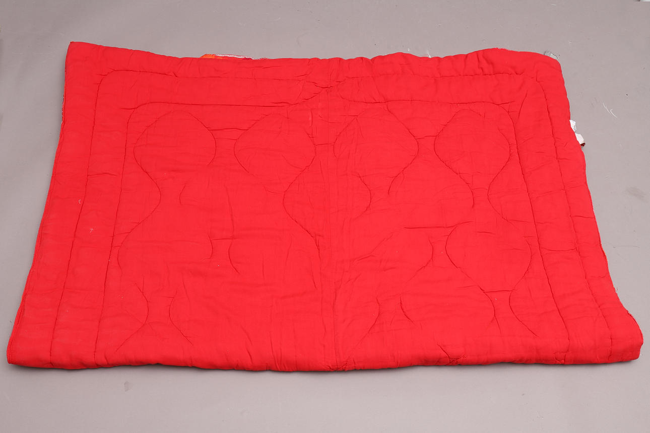På täcket har dragkedjan tagits bort och sytts igen. Bruksslitage.