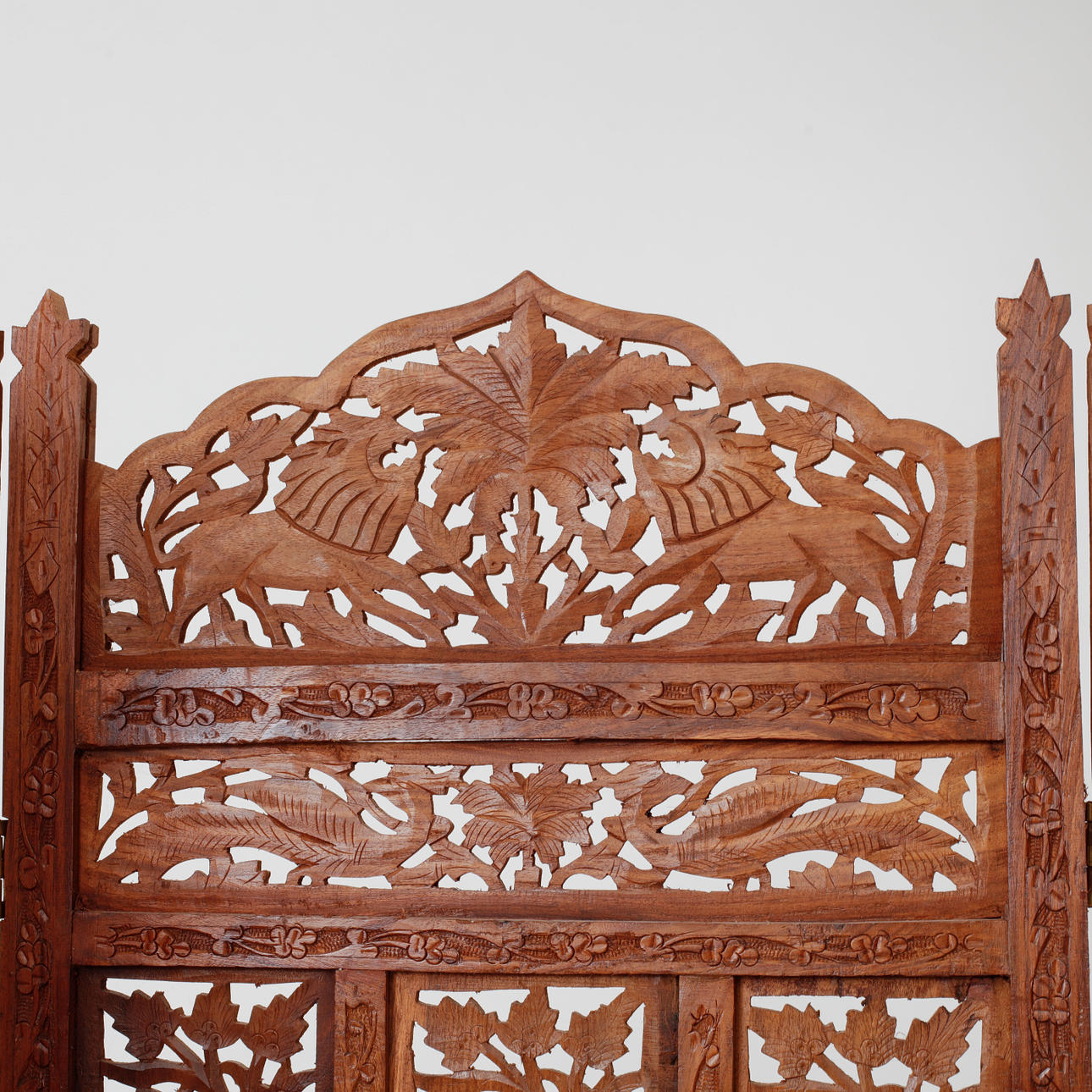 Skuret trä med genombruten dekor. Längd ca 51 cm, höjd ca 182 cm.