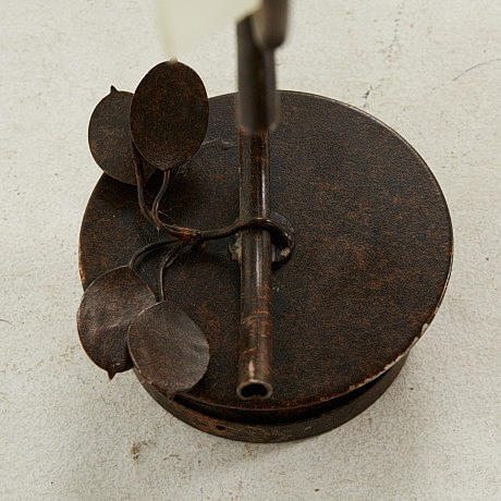 patinerad metall, frostade kupor av glas, längd ca 40 cm.