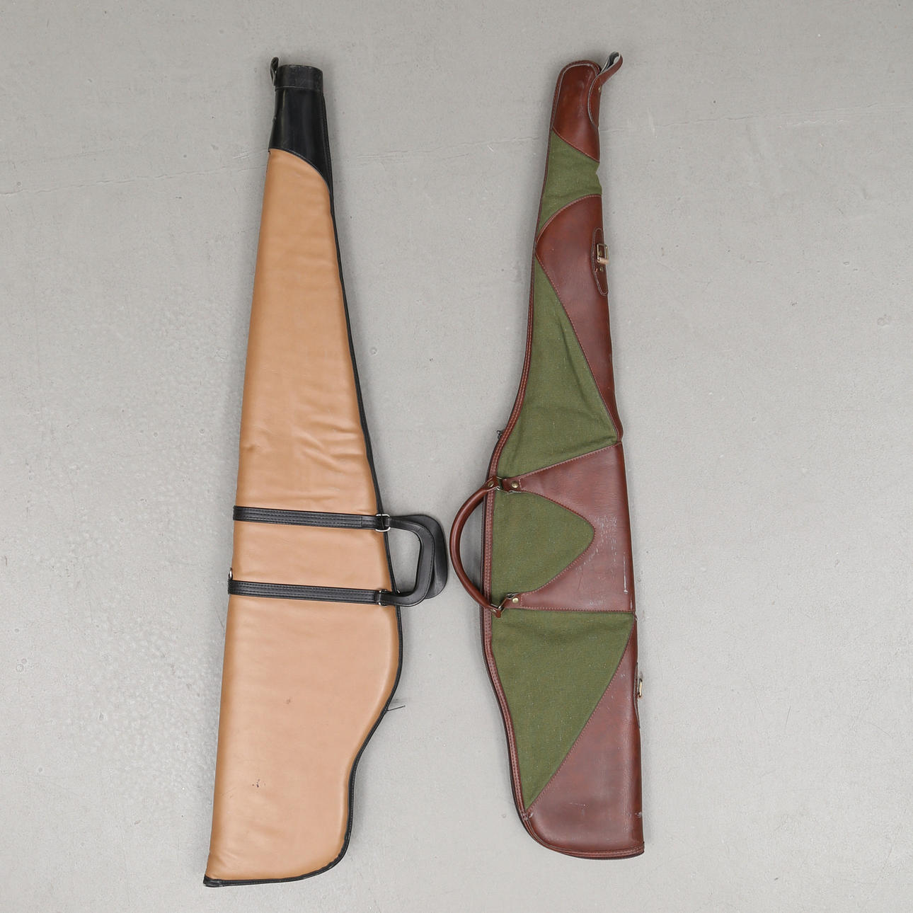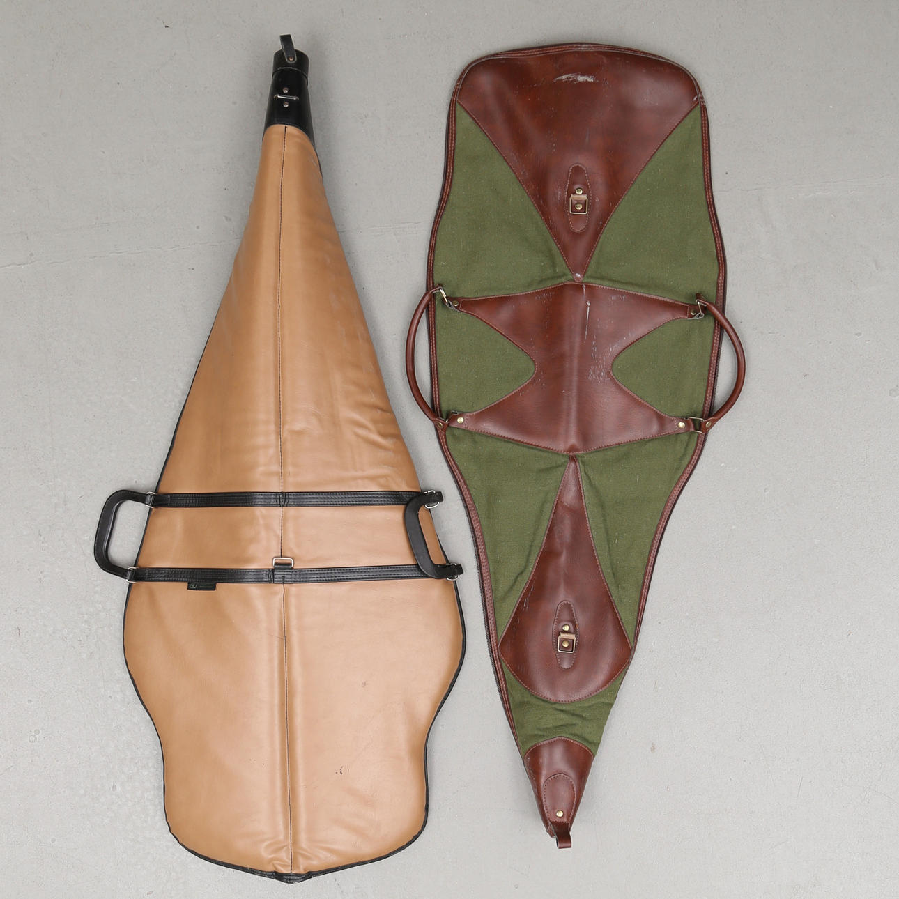 Fodral i grön textil och konstläder, invändigt fodrad , märkt Caces, Italy, mått 123x23 cm