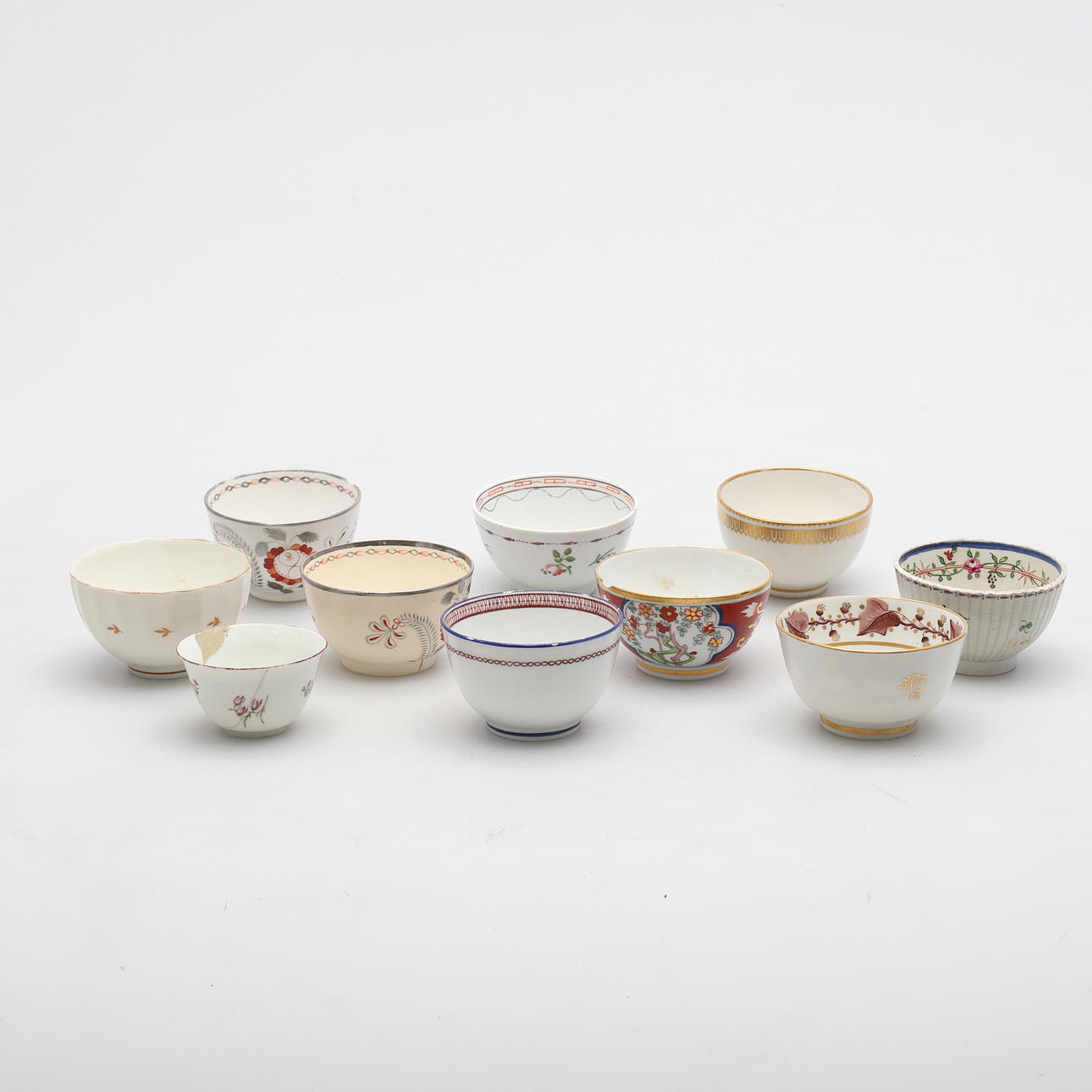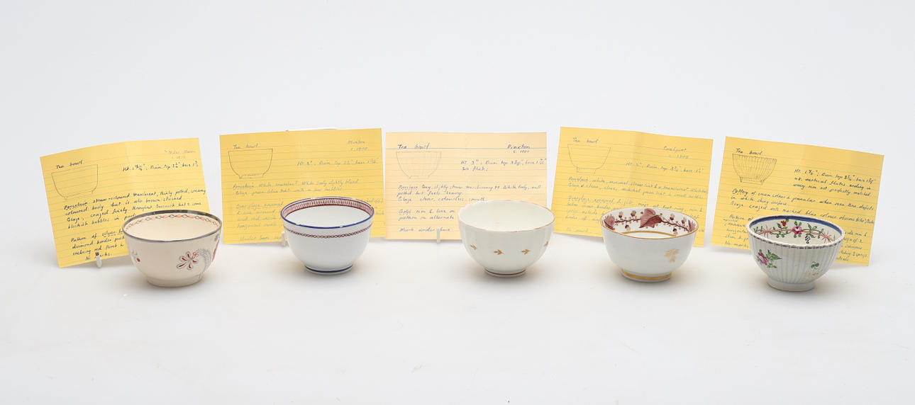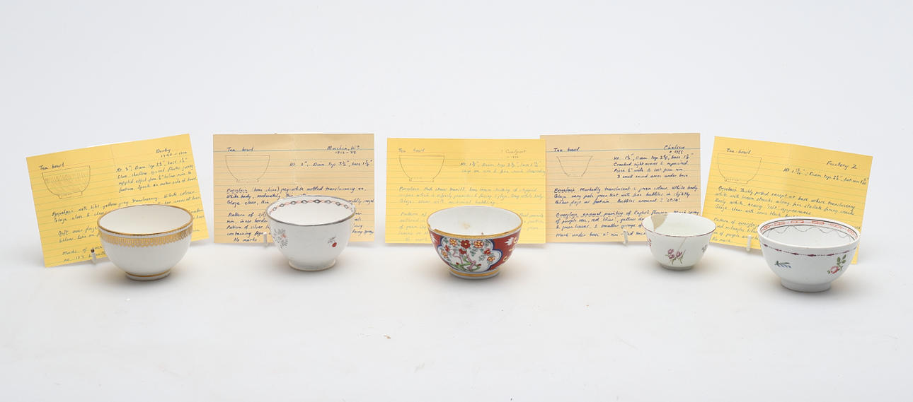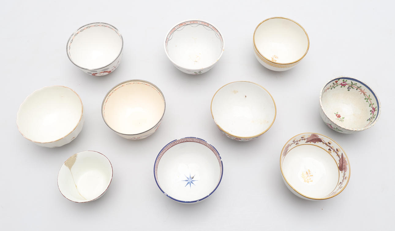 1754329. TESKÅLAR, TIO STYCKEN ENGELSKA, OMKRING 1780-1810.