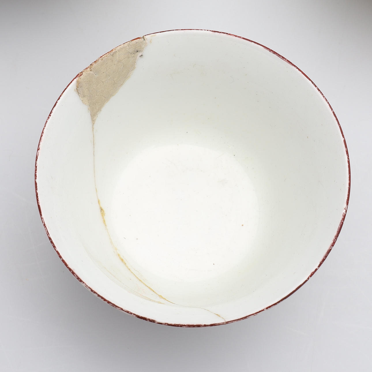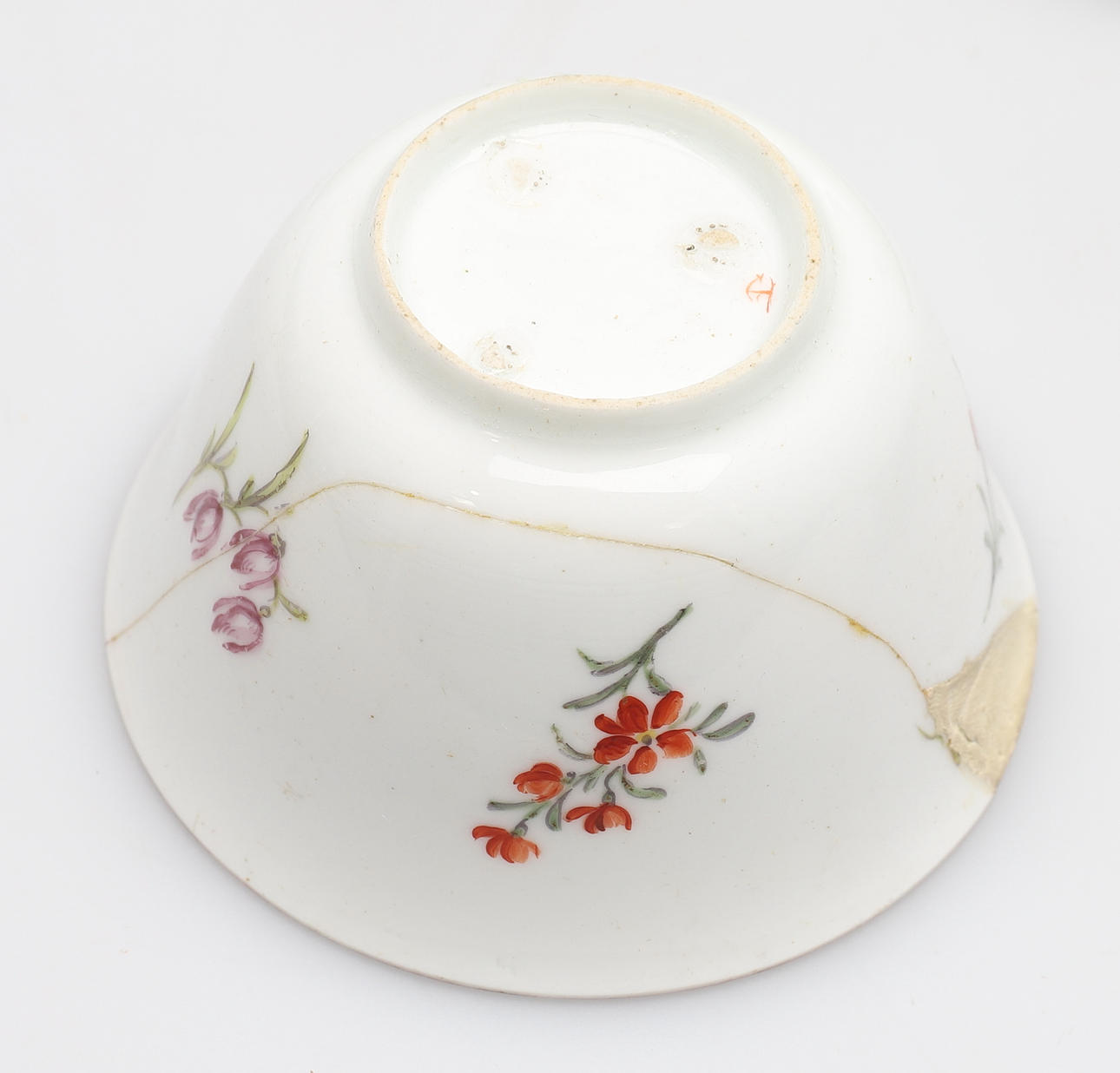 inklusive en Chelsea porslinskål, målade blommiga sprayer med brun linje kant, rött ankarmärke, 6 cm diameter, (knäckt och återställt),
