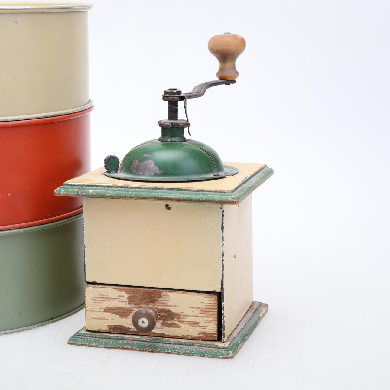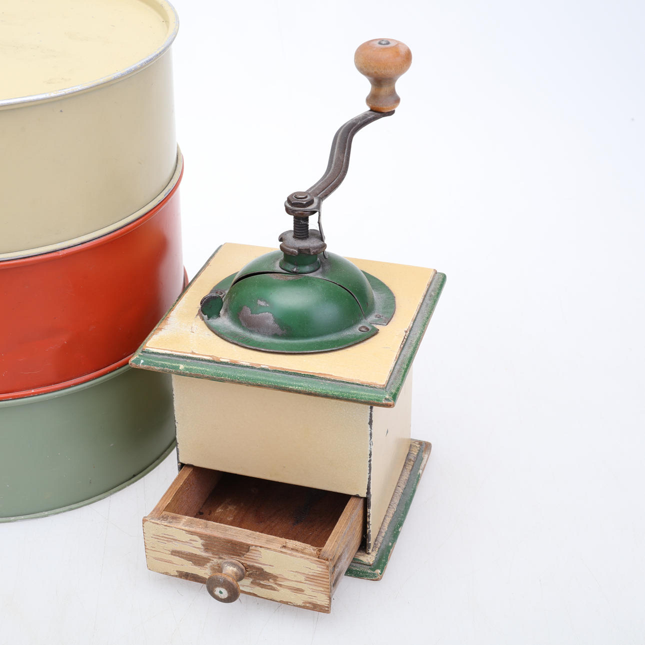 1754834. KAKBURK, plåt,samt kaffekvarn.