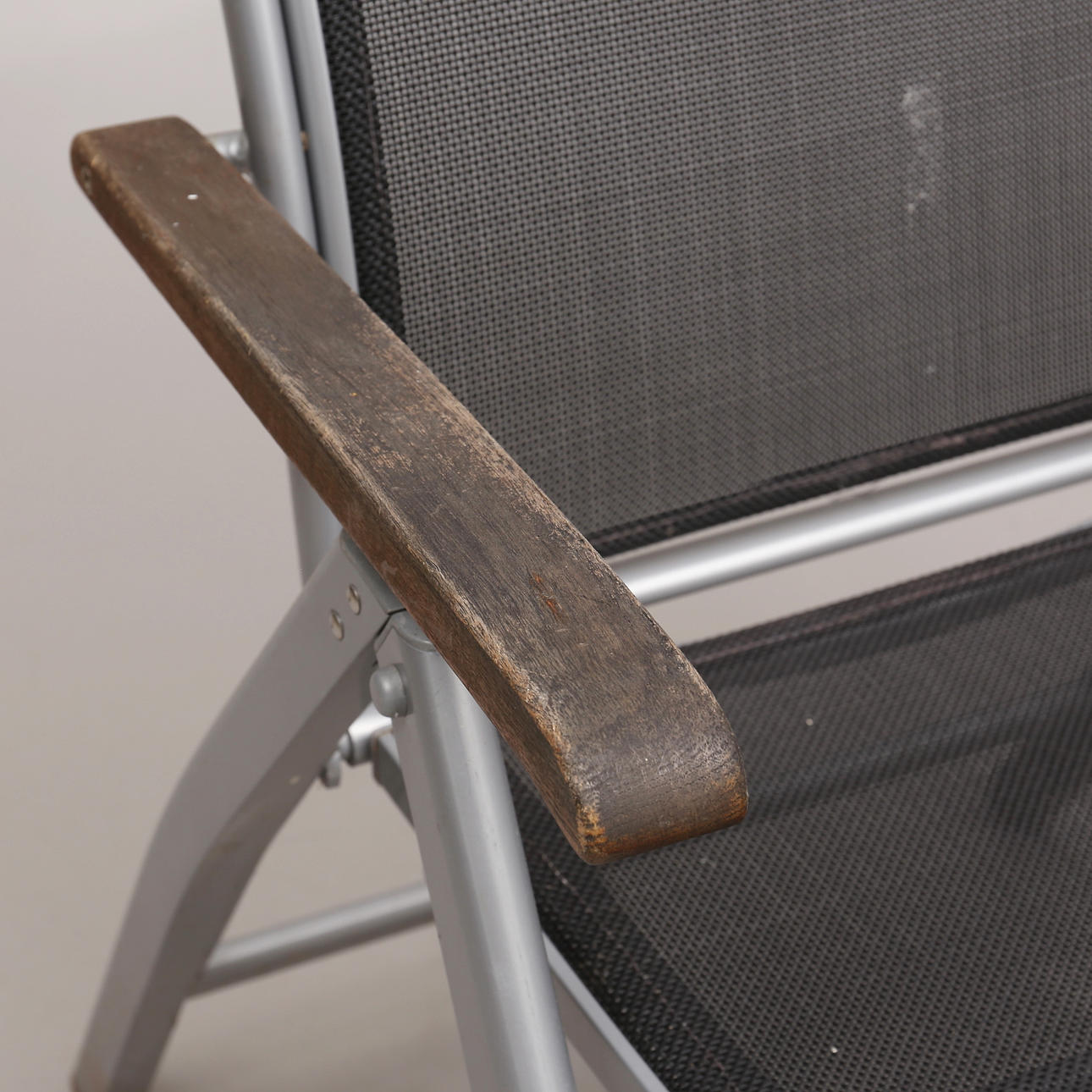 Ihopfällbara positionsstolar. Höjd 111, sitthöjd 46, bredd 60 cm.