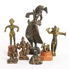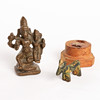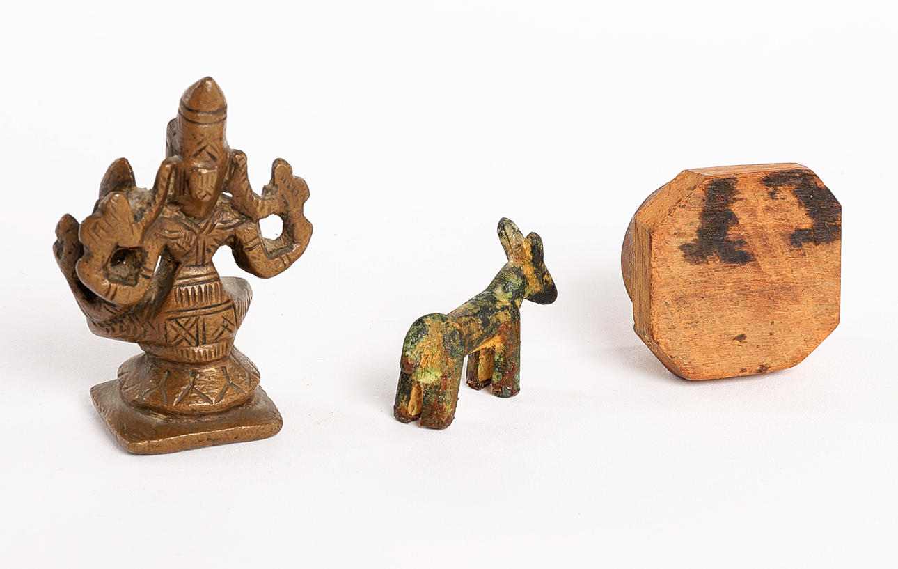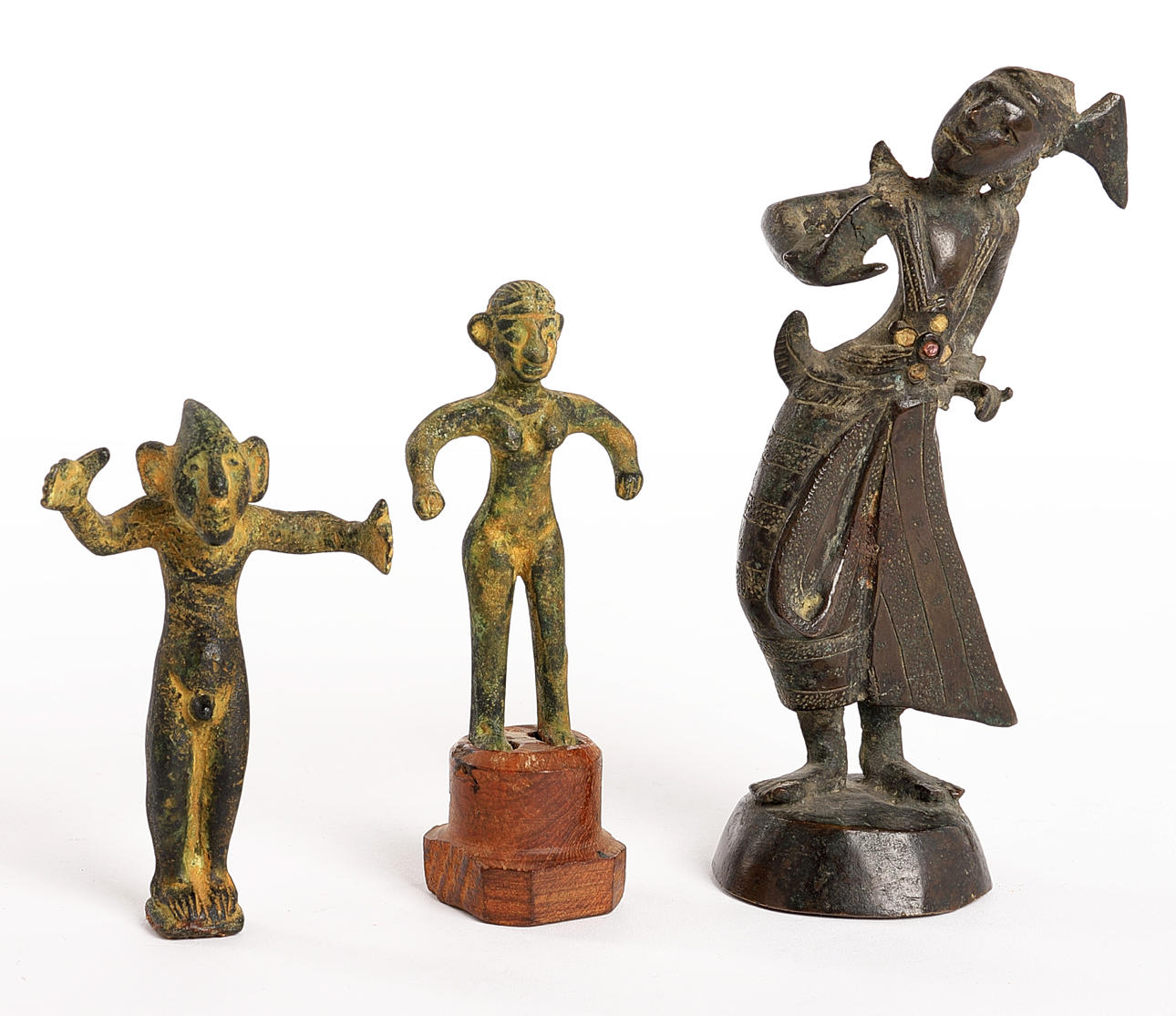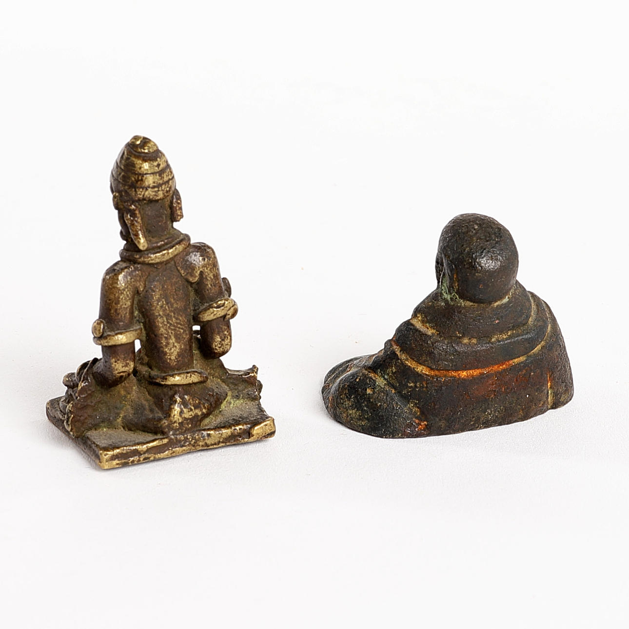 Buddhor, 3 st, 1900-tal, 4 bronskopior på antika original, höjd 3-15cm.