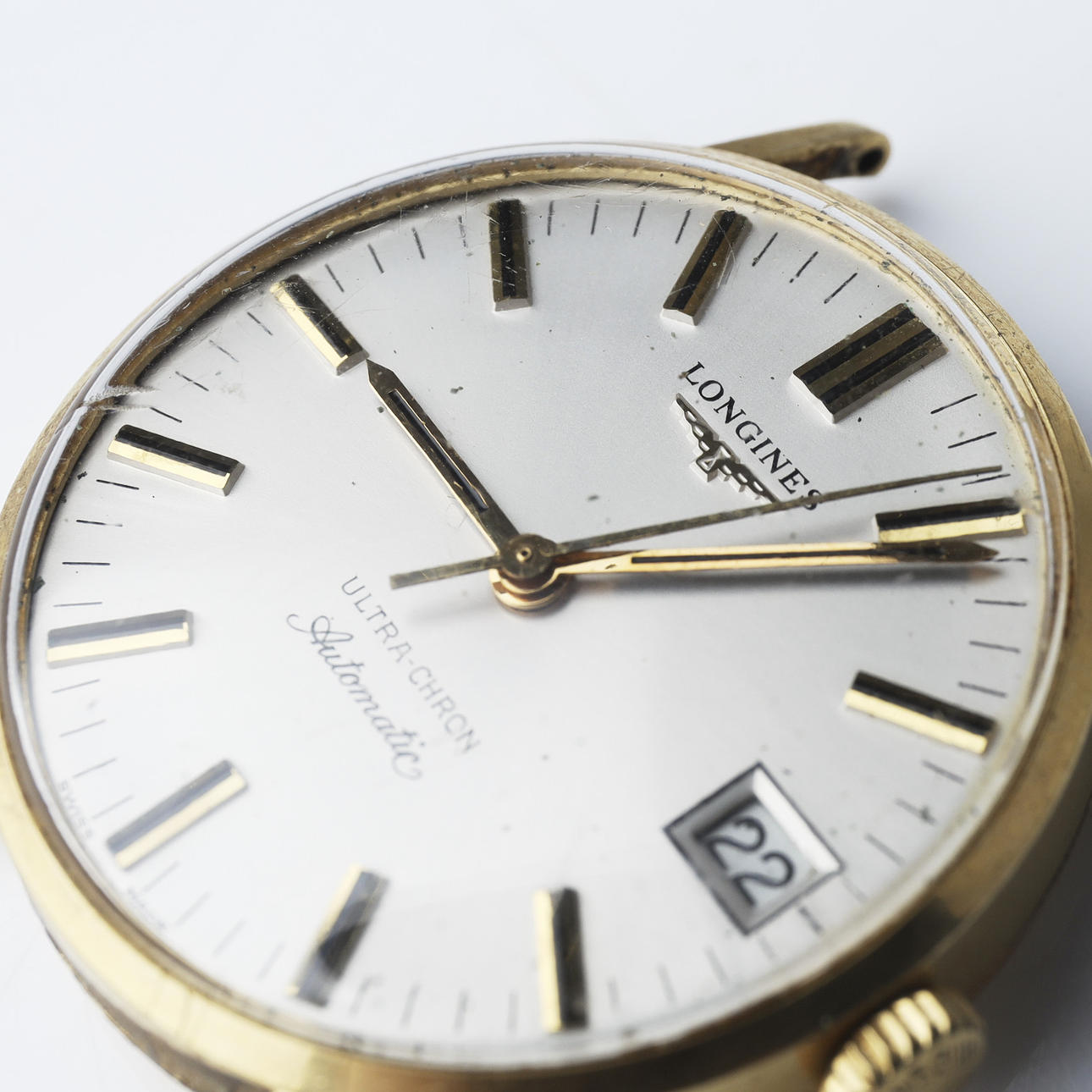 Gåvogravyr, armband saknas, repor, slitage. Fungerade vid katalogiseringstillfället. Ingen funktionsgaranti lämnas.