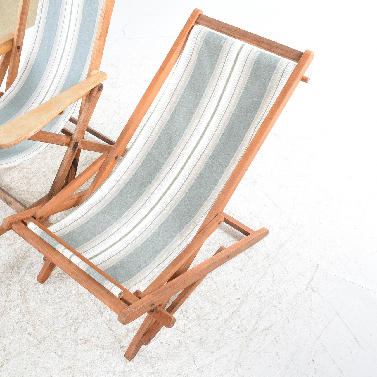 Hopfällbara, stomme i lövträ, sittduk i textil, 1900-talets mitt, Hopfälld L ca 122 / 132 cm, B ca 62 / 73 cm.