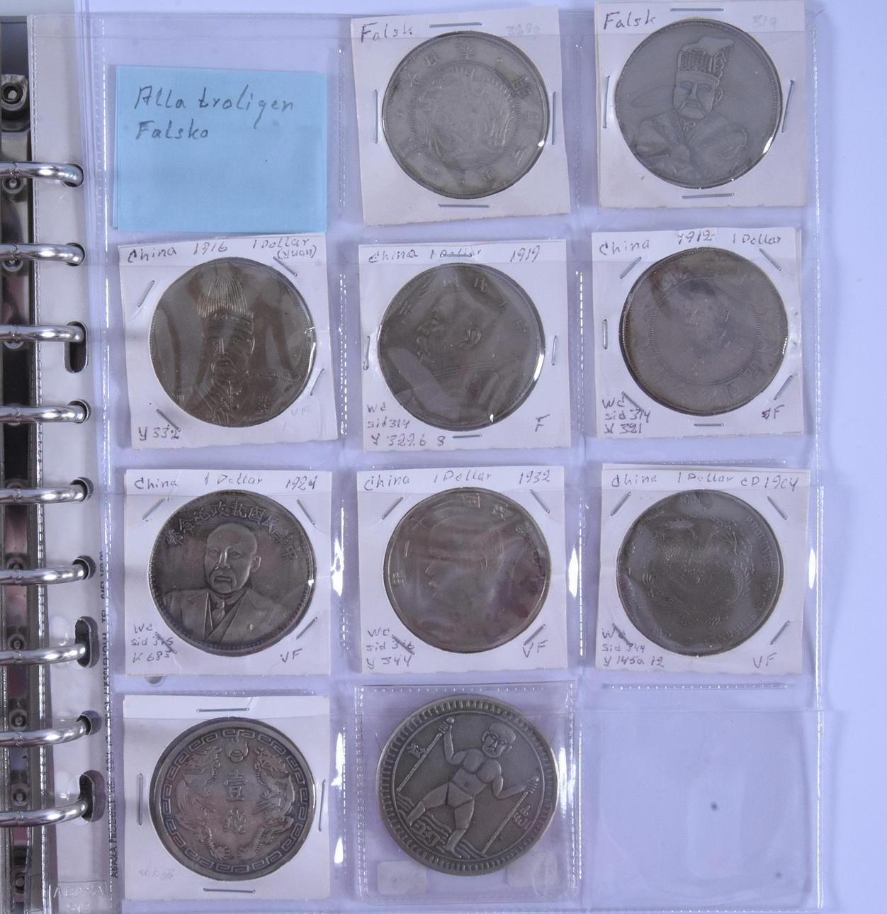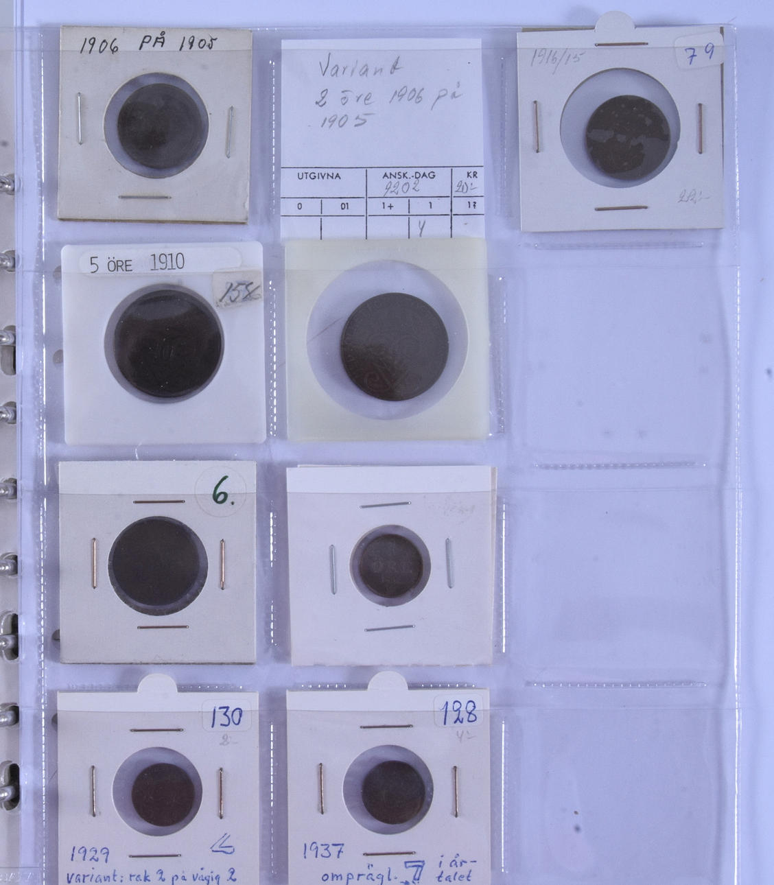 Ett album med bl a enkrona tillverkad av Napoleon Svensson ”Trollhätte-Svensson”, mm.