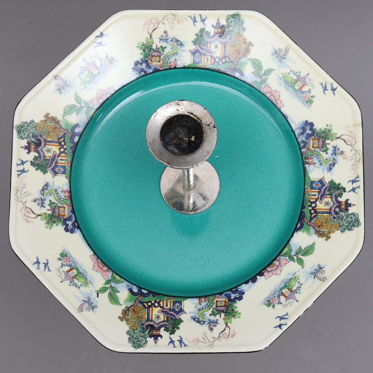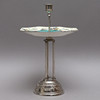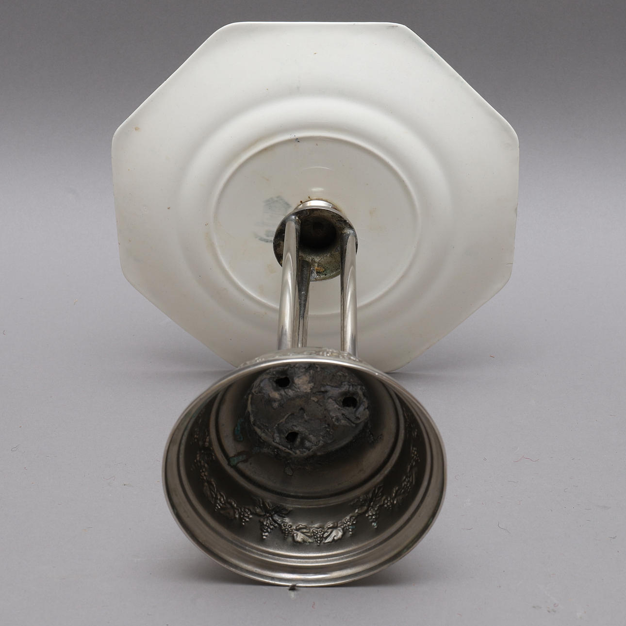 Bruksslitage, spricka i tallrik, skav/märken i metall, ojämnheter på ljusstake, stearinrester.