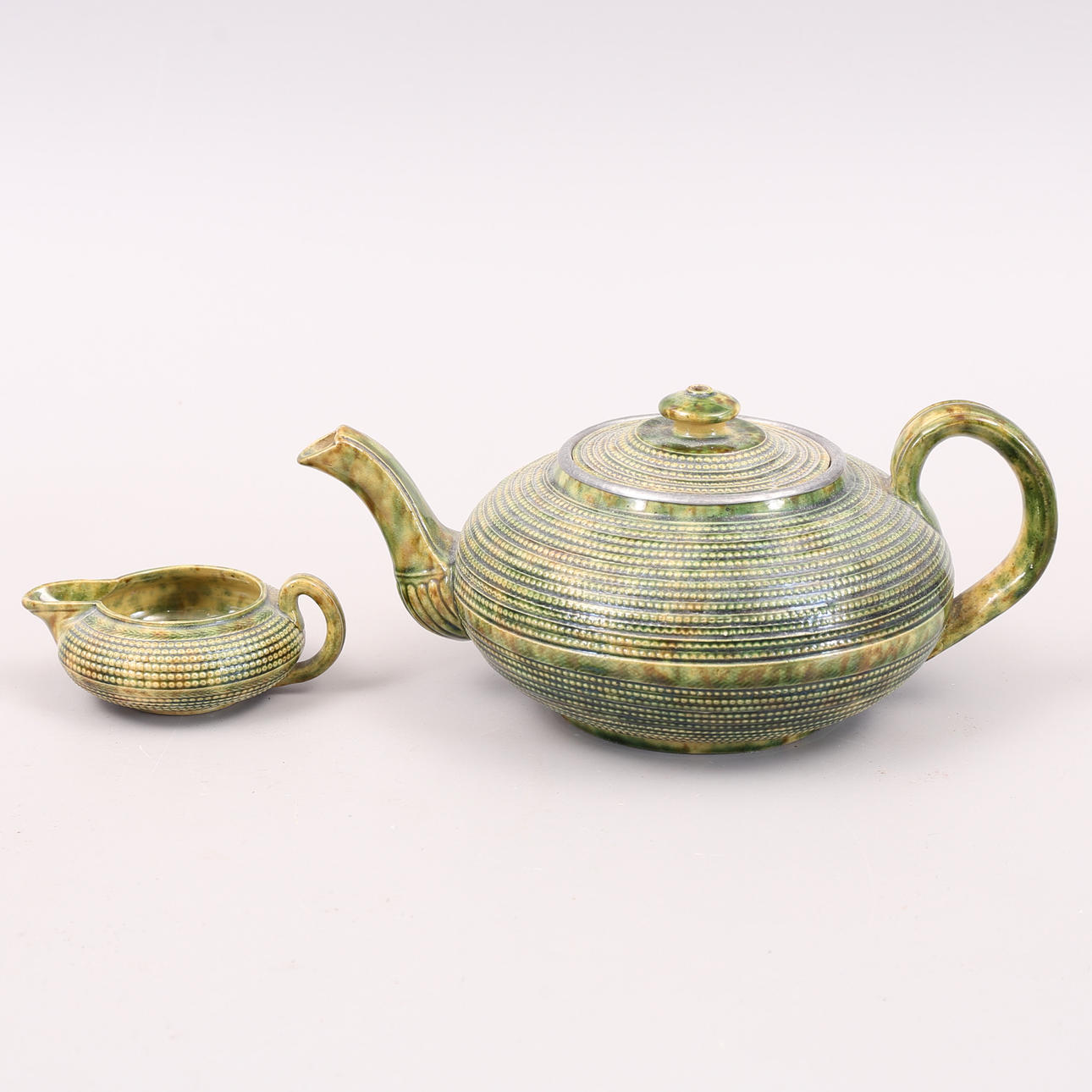 Tekanna och gräddkanna Robert Ahlberg längd 11,5 och 26 cm.