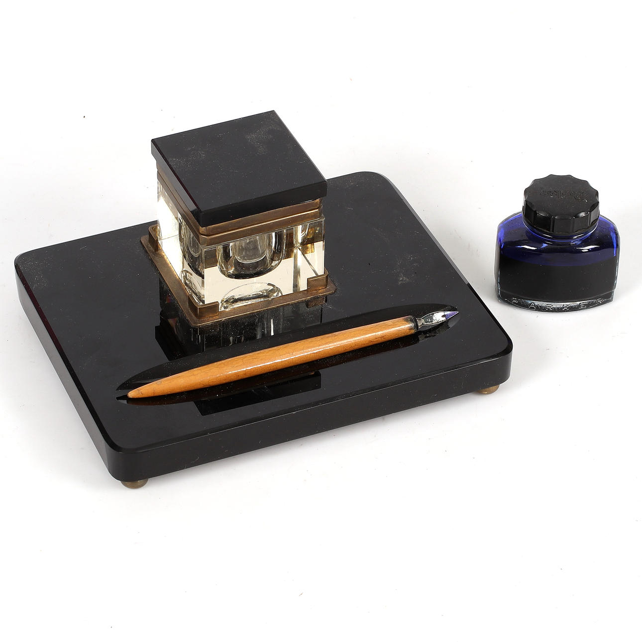 1761121. SKRIVSTÄLL, 4 delar, sten, glas, 1900-tal.