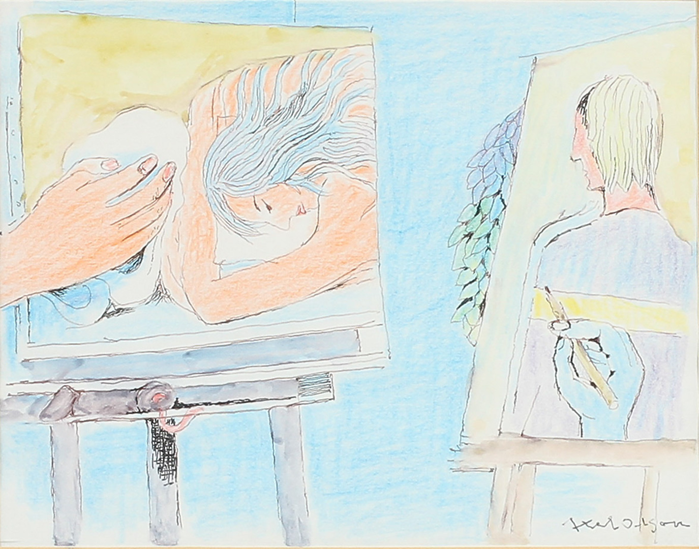 176174. AXEL OLSON. krita, sign.