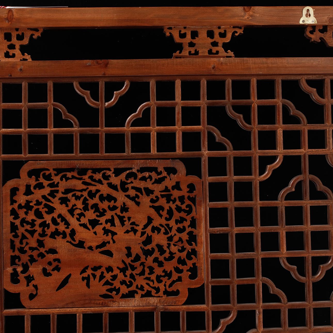 Snidat trä med dekor av fåglar och växtlighet, Bredd ca 118, höjd ca 81 cm, djup ca 3 cm.