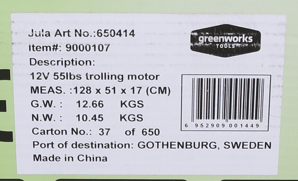 1762191. BÅTMOTOR, eldriven, Greenworks Tools, 2000-tal.