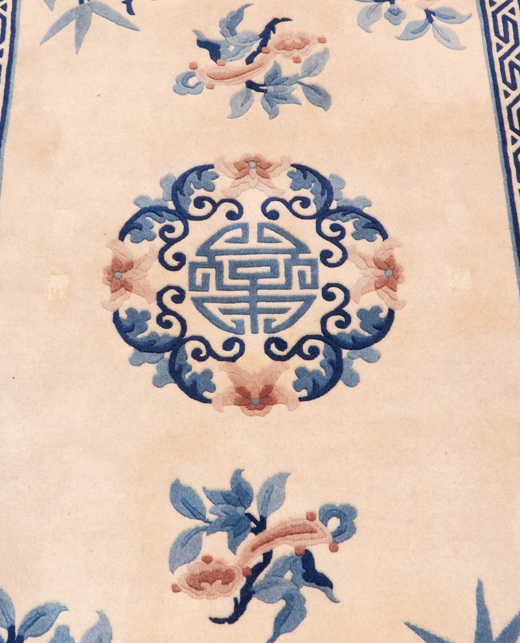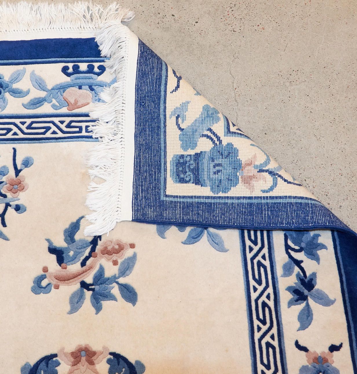 1900-talets andra hälft, blått mönster mot ljus botten, ca 185x123 cm.