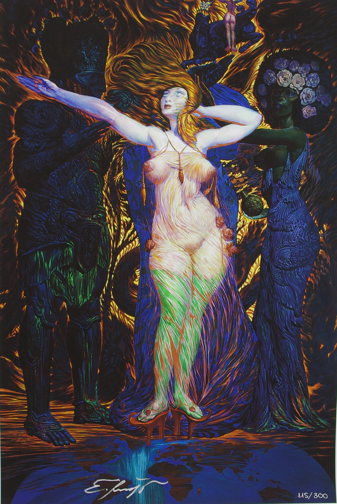 176336. ERNST FUCHS. Screentryck på bomullsduk, handsignerat.