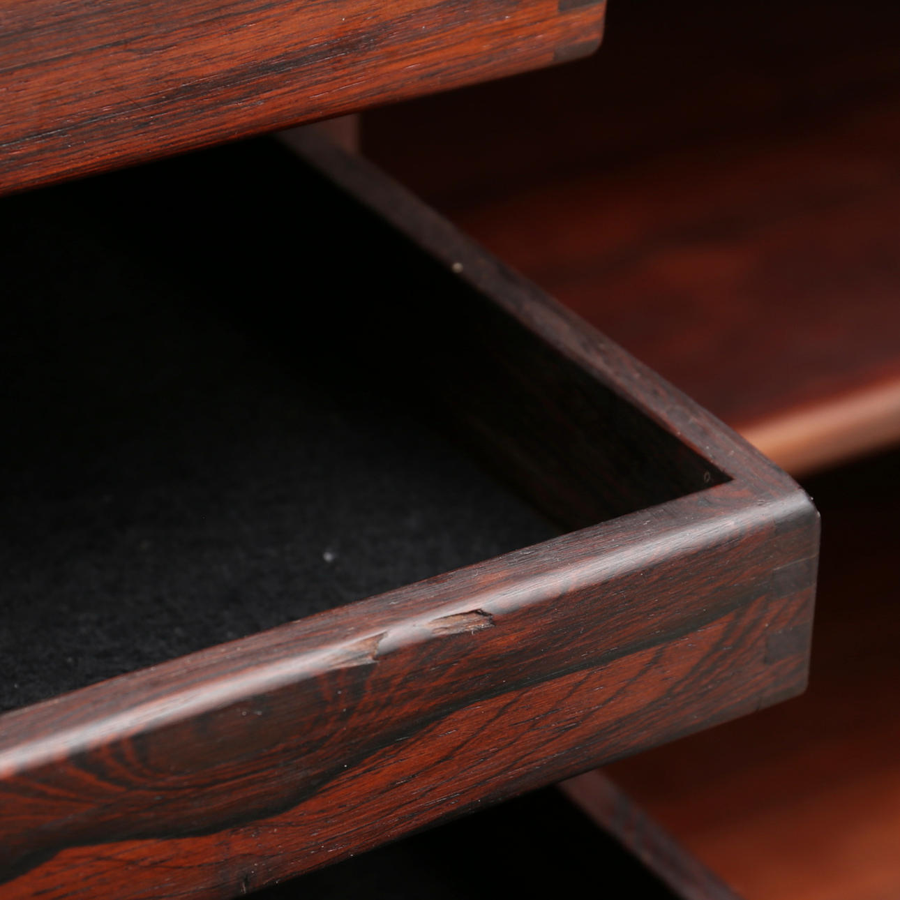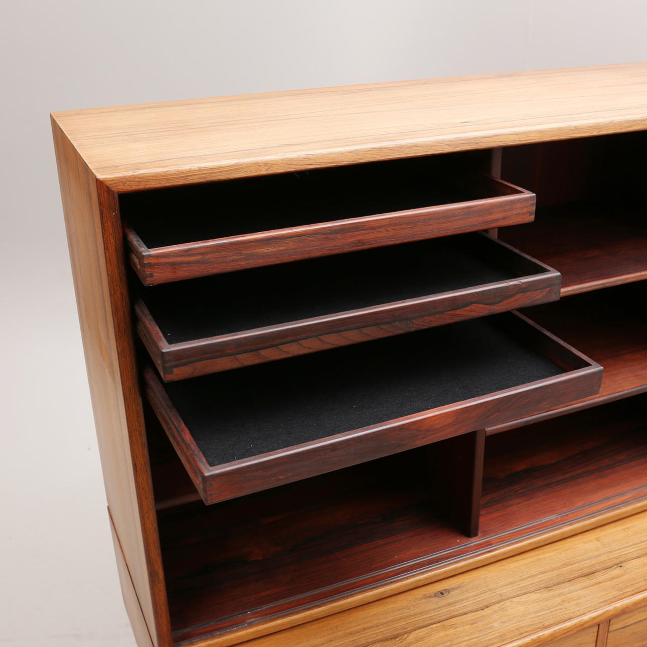 Ett par skjutdörrar med invändig inredning samt fyra draglådor.