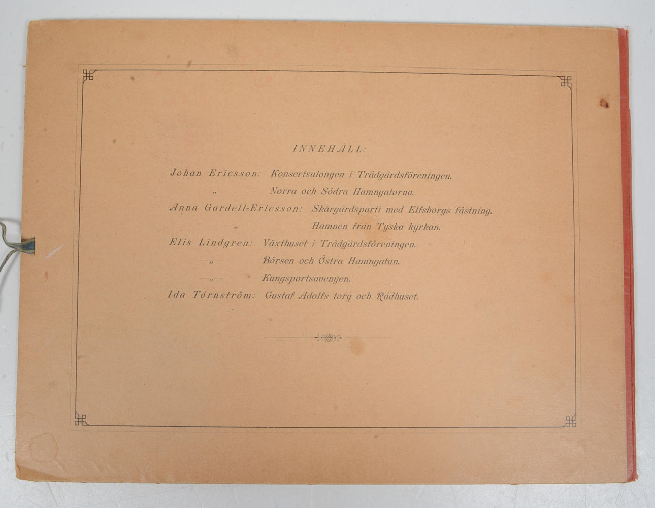 Utan ort och år. 8 Akvarelltryck i en portfolio med klotrygg och väbevarat knytband. 26 x 35 cm.