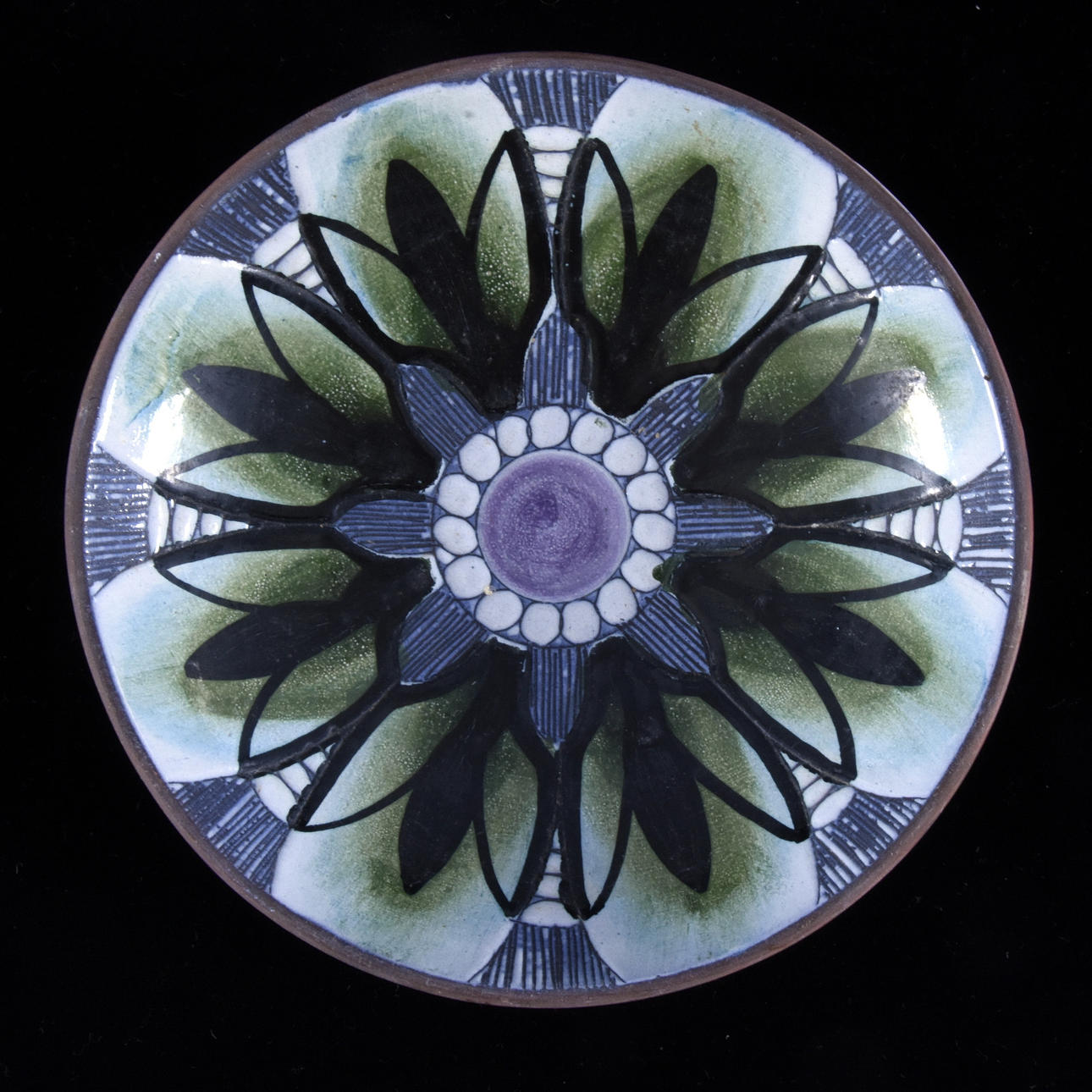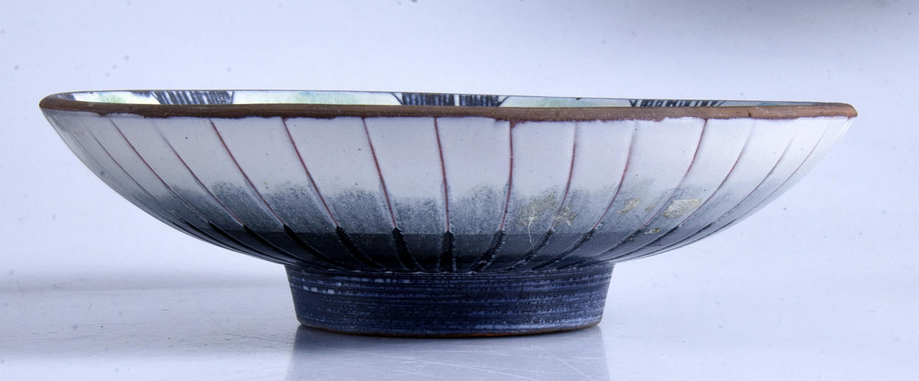 Höjd 4,5 cm. Diameter 15 cm. Oidentifierad signatur.