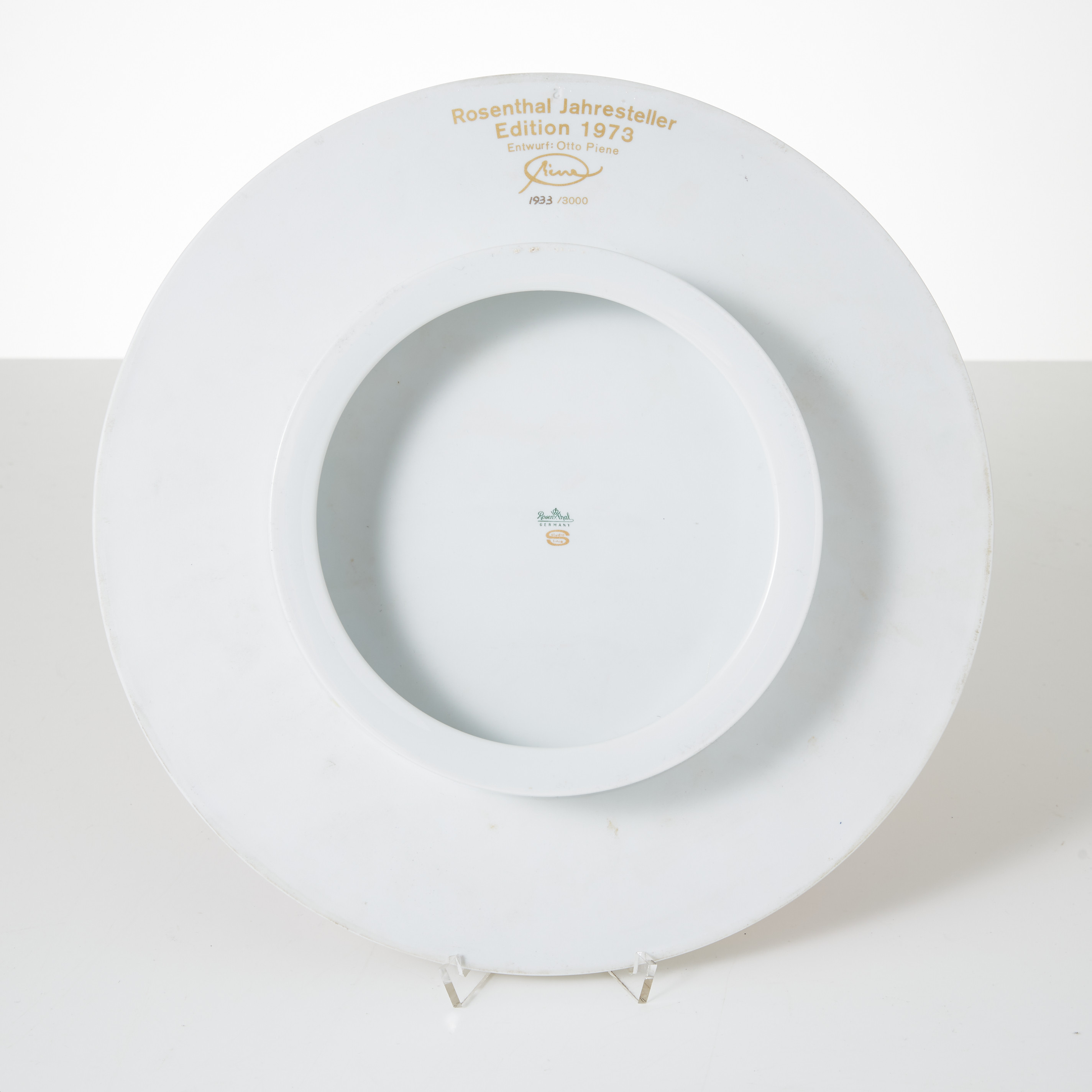 1765459. OTTO PIENE. objekt, Rosenthal, 1973, polykrom dekor av regnbåge, undertill märkt.