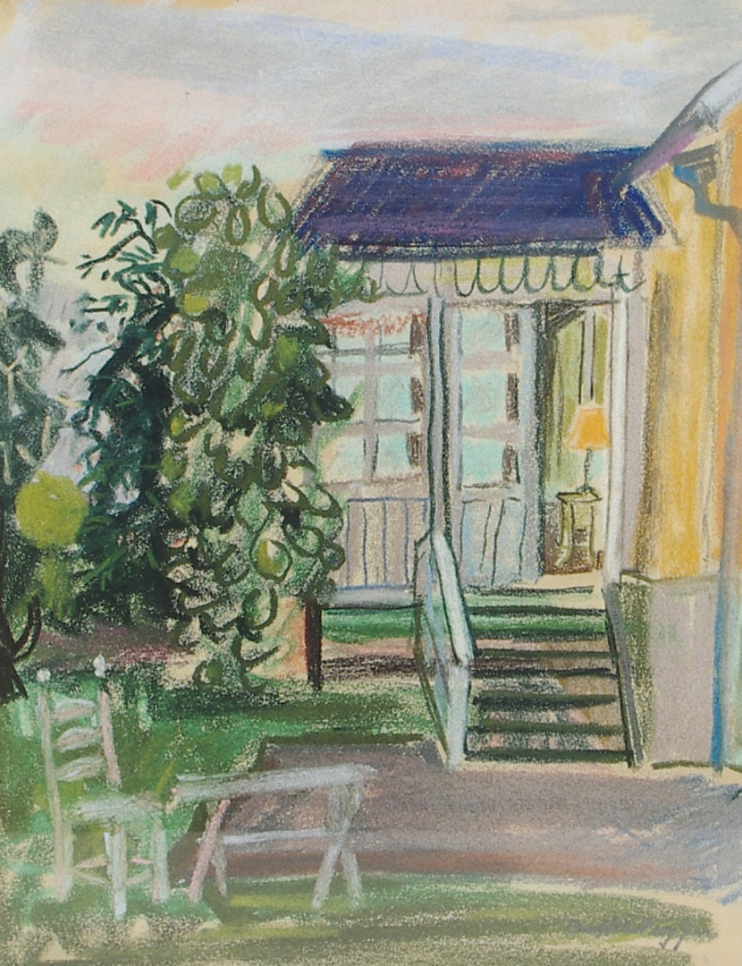 176593. EVA HOLMBERG-JAKOBSSON. Veranda, teckning, signerad.